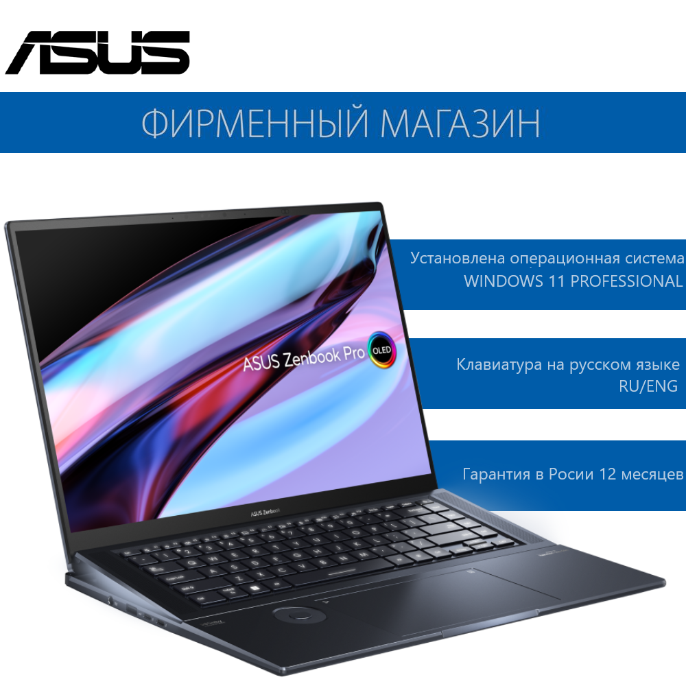 Купить Ноутбук ASUS Zenbook Pro 16X OLED UX7602ZM-ME108X Core i7-12700H/32Gb/1Tb SSD M2/GF RTX 3060 6Gb/16"4K OLED(3840 x 2400) Touch screen /WiFi6E/BT/NumPad 2.0/Windows 11 Pro/2.4Kg/Tech Black/Stylus (90NB0WU1-M008H0)