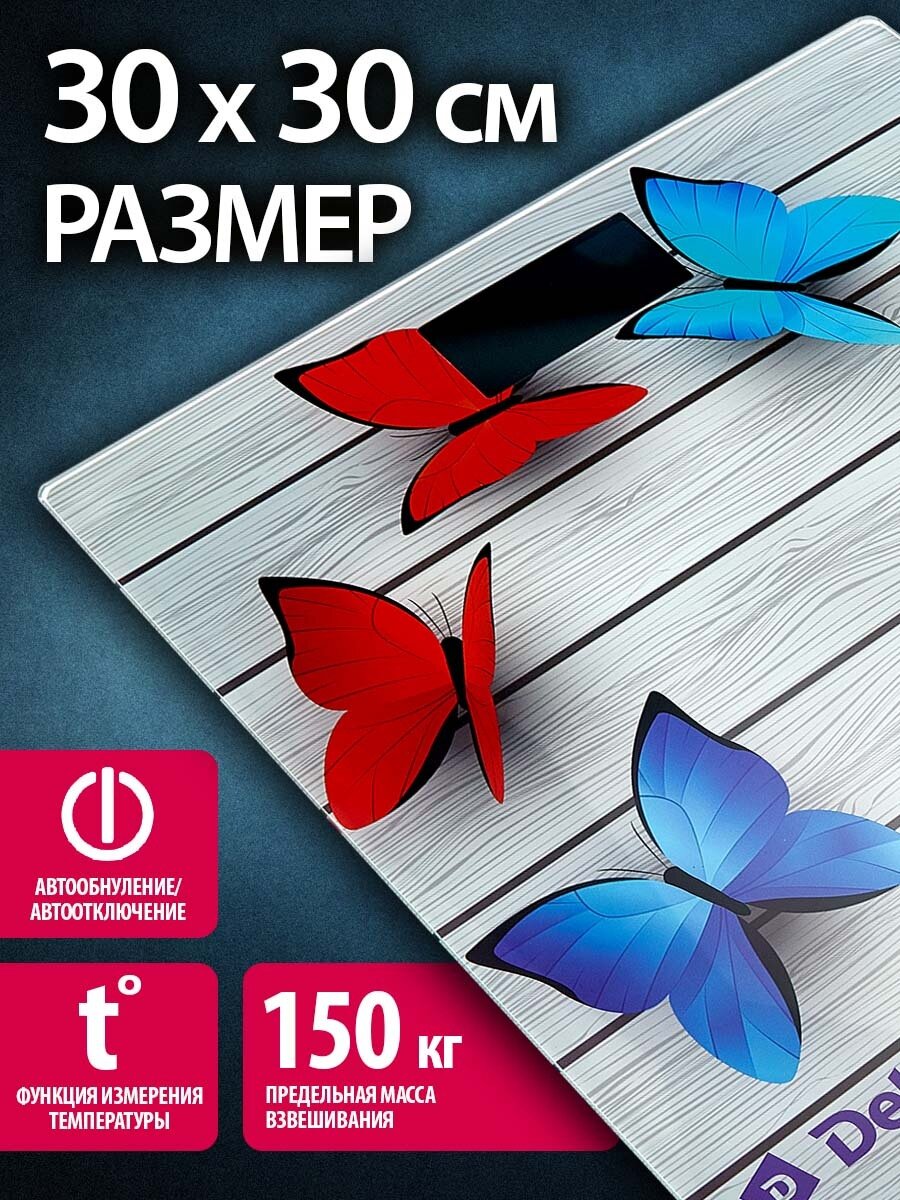Весы Напольные Электрон Стекло Радужные Бабочки 150КГ 30Х30СМ Дельта (6) D9218 . интересное: