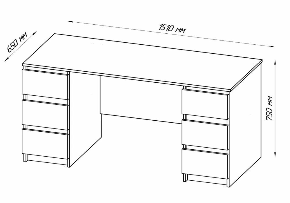 Купить Кастор стол письменный 6 ящиков 151х65 RU сонома