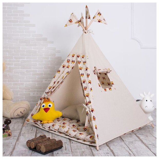 Вигвам совушки KETT-UP с окном и карманом, лен интересное:
