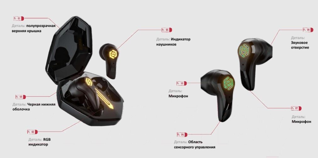 | Конструктивные особенности | микрофон / для игр; для ноутбука; для спорта; для телефона / для спорта / микрофон / подсветка |