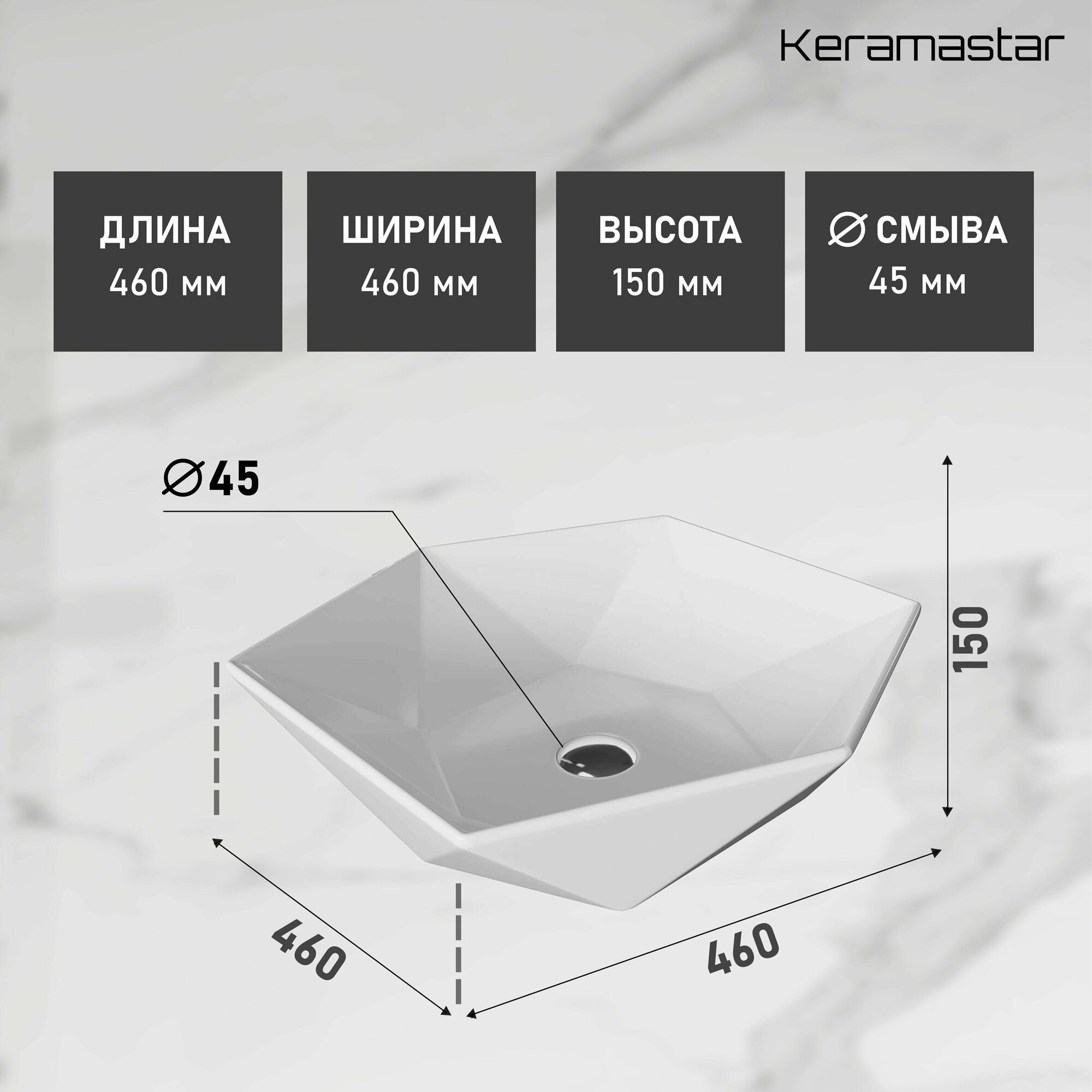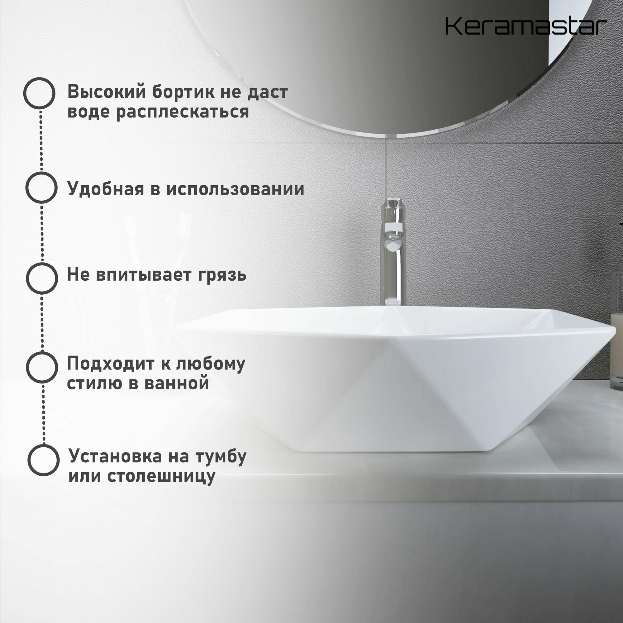 Раковина на столешницу Keramastar Fusion 460х460х150, белая KR003011 интересное: