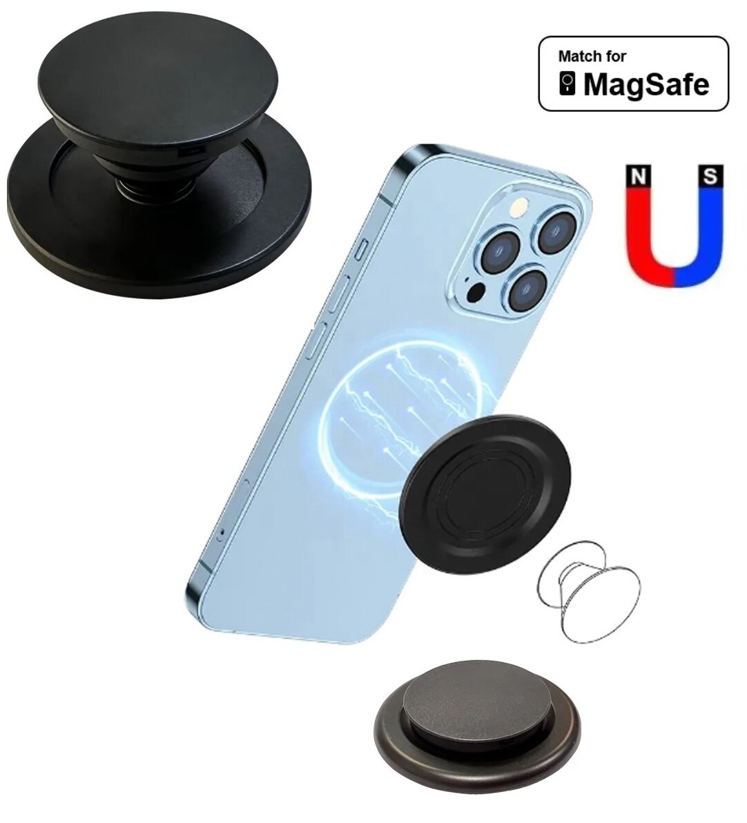 Магнитный держатель Magsafe с опорным кольцом и петлей для iPhone