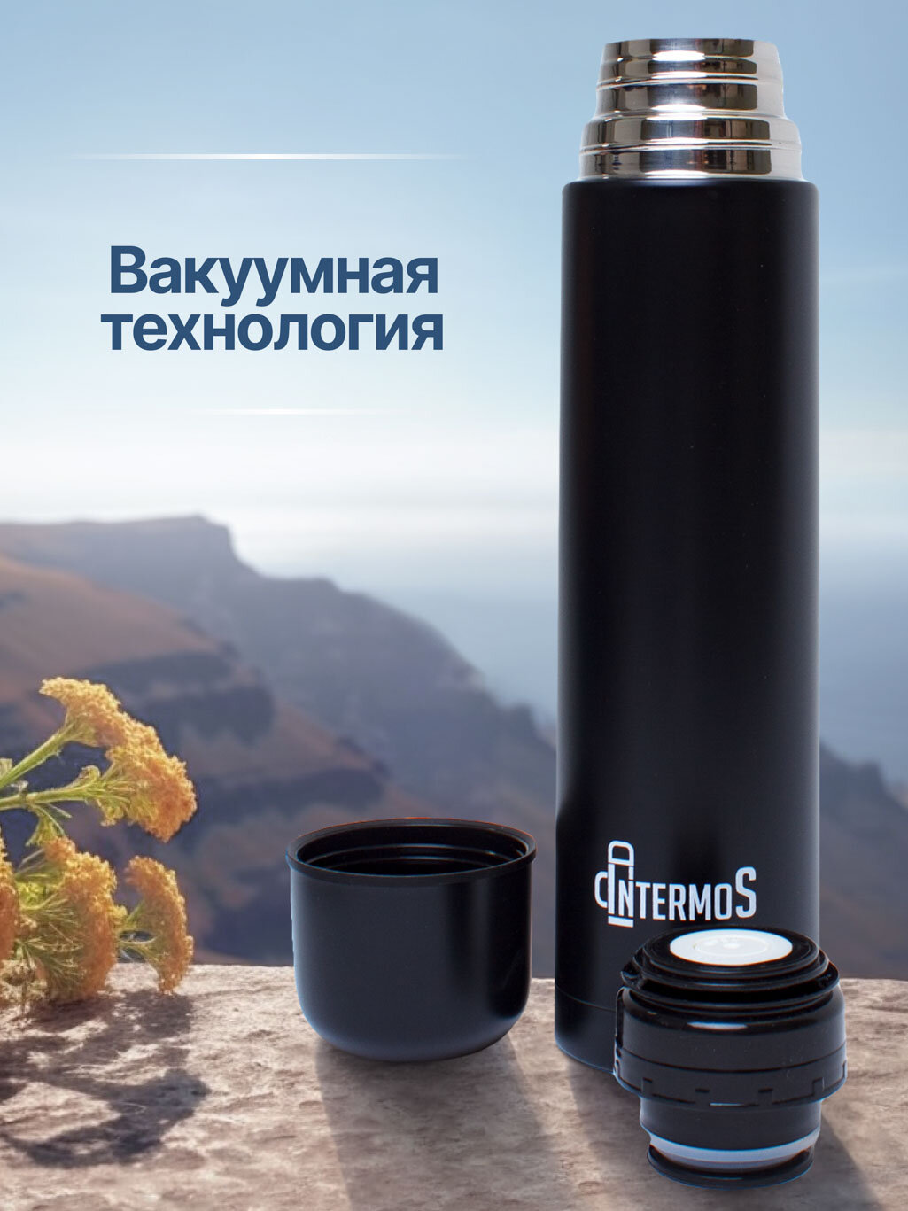 Термос Intermos классический с узким горлом с кнопкой, нержавеющая сталь, черный 1 литр интересное: