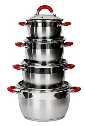 Набор кастрюль с крышками ASTIX SCS-018, из нержавеющей стали, подходит для всех типов плит, 8 предметов, в подарочной упаковке интересное: