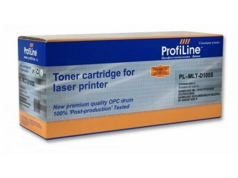 Картридж ProfiLine MLT-D105S для принтеров Samsung ML-1910/ML-1915/ML-2520/ML-2540/ML-2540R/ML-2541/ML-2545/ML-2580/ML-2580N/ML-2646/SCX-4600/SCX-4605/SCX-4610/SCX-4623/SCX-4623F/SCX-4623FN/SF-651/ML-2525W 1500 копий совместимый
