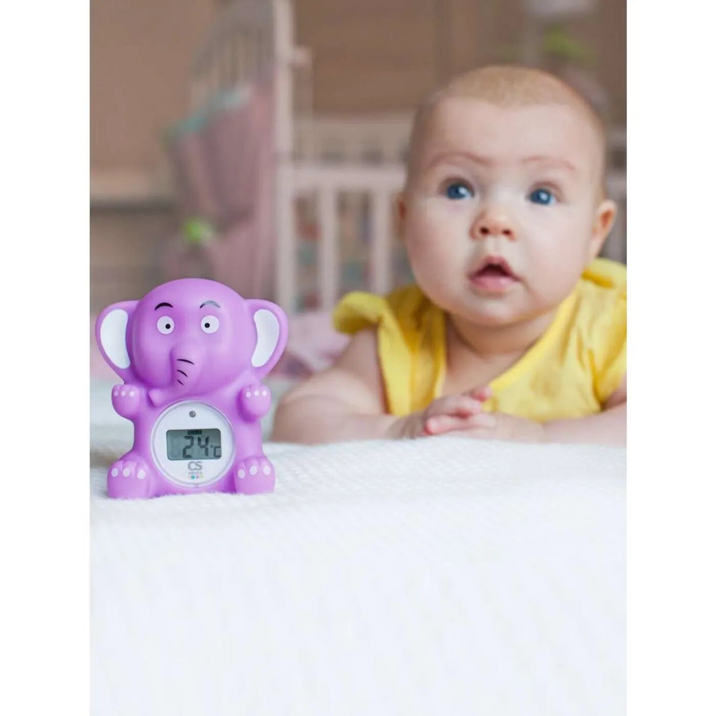 Безртутный термометр для измерения температуры воды и воздуха CS Medica KIDS CS-81e в форме игрушки "Слоник" фиолетовый