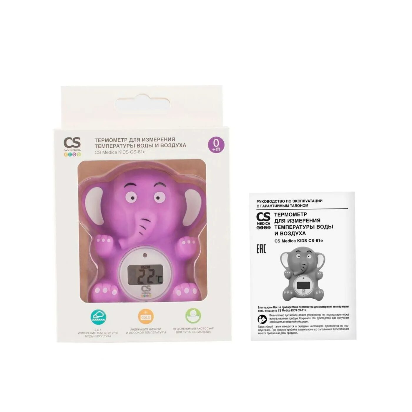 Безртутный термометр для измерения температуры воды и воздуха CS Medica KIDS CS-81e в форме игрушки "Слоник" фиолетовый