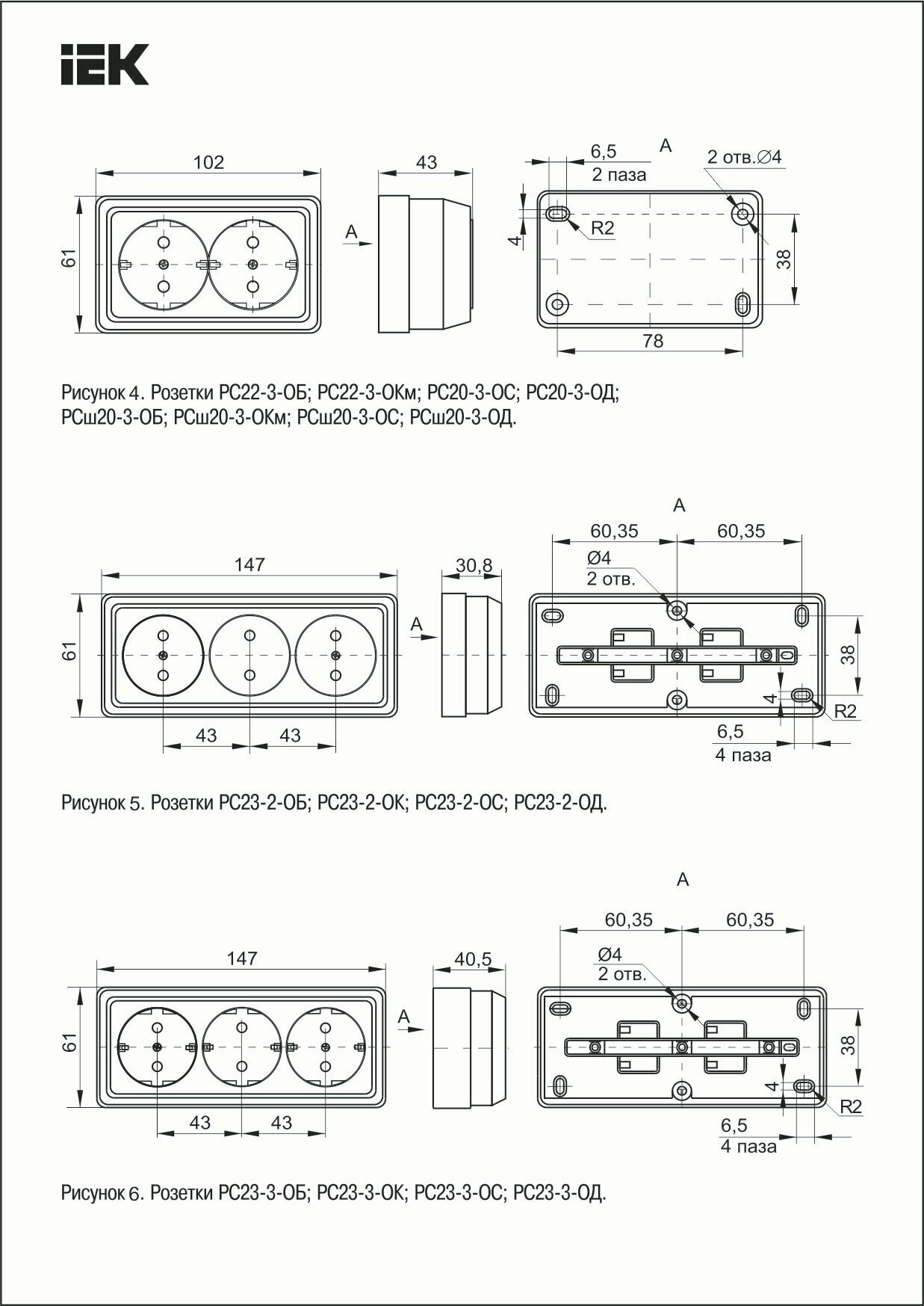 Трехместная розетка IEK РС23-2-ОБ, без заземляющего контакта, 10А, открытой установки, октава, белый ERO30-K01-10-DC