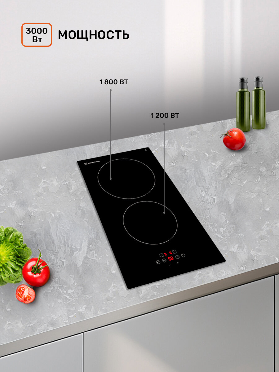 Электрическая варочная панель Hebermann HBKC 3020.1 BL; Защита от перегрева, Индикатор остаточного тепла, Кнопка блокировки панели,Отключение при выкипании, Функция Stop&Go; Таймер конфорок