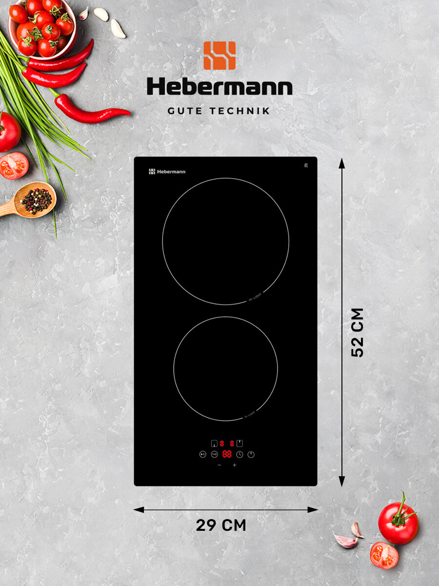 Электрическая варочная поверхность, встраиваемая, Hebermann HBKC 3020.1 BL; двухконфорочная, сенсорное управление
