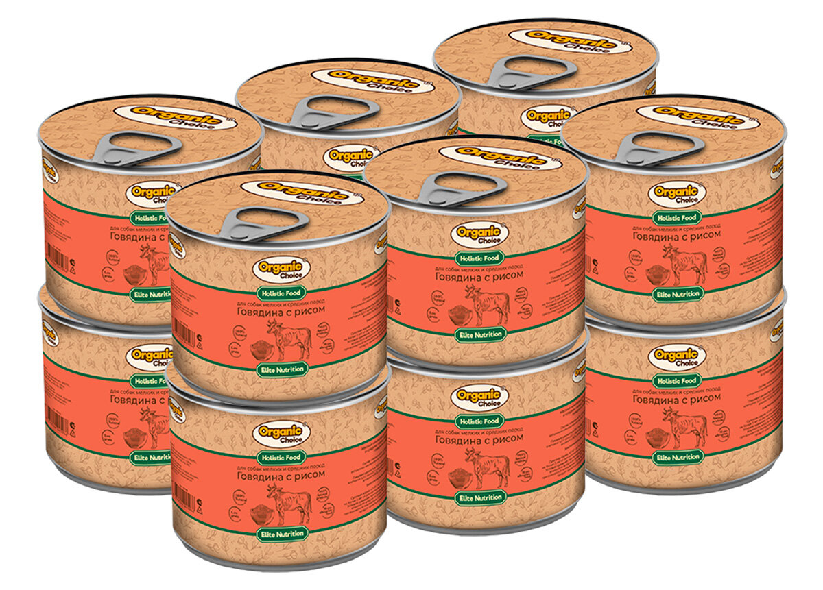 Organic Сhoice влажный корм для взрослых собак мелких и средних пород говядина с рисом, в консервах - 240 г х 12 шт