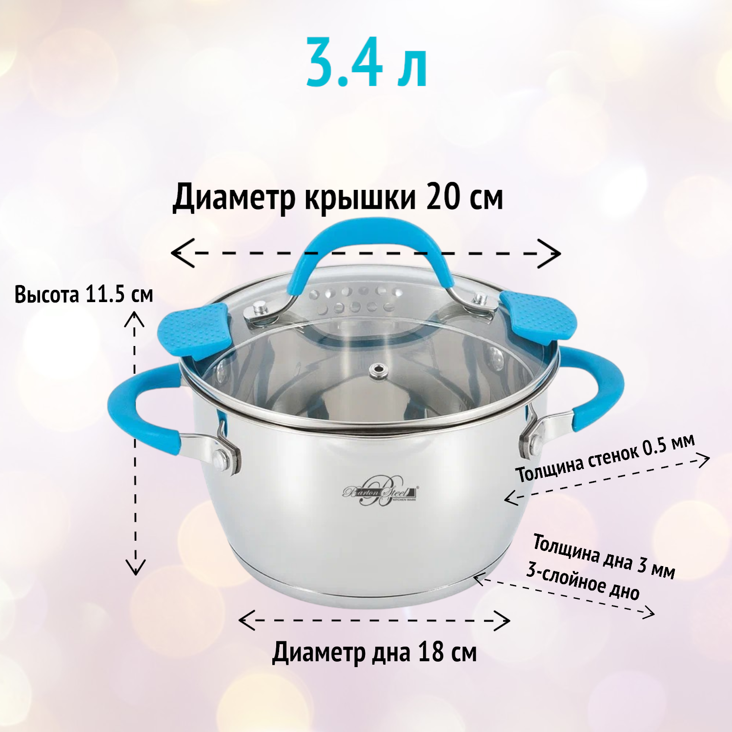 СохранитьКастрюля 3.4 л из нержавеющей стали со сливом в крышке Barton Steel BS 2117-20 BL, голубая ручка интересное: