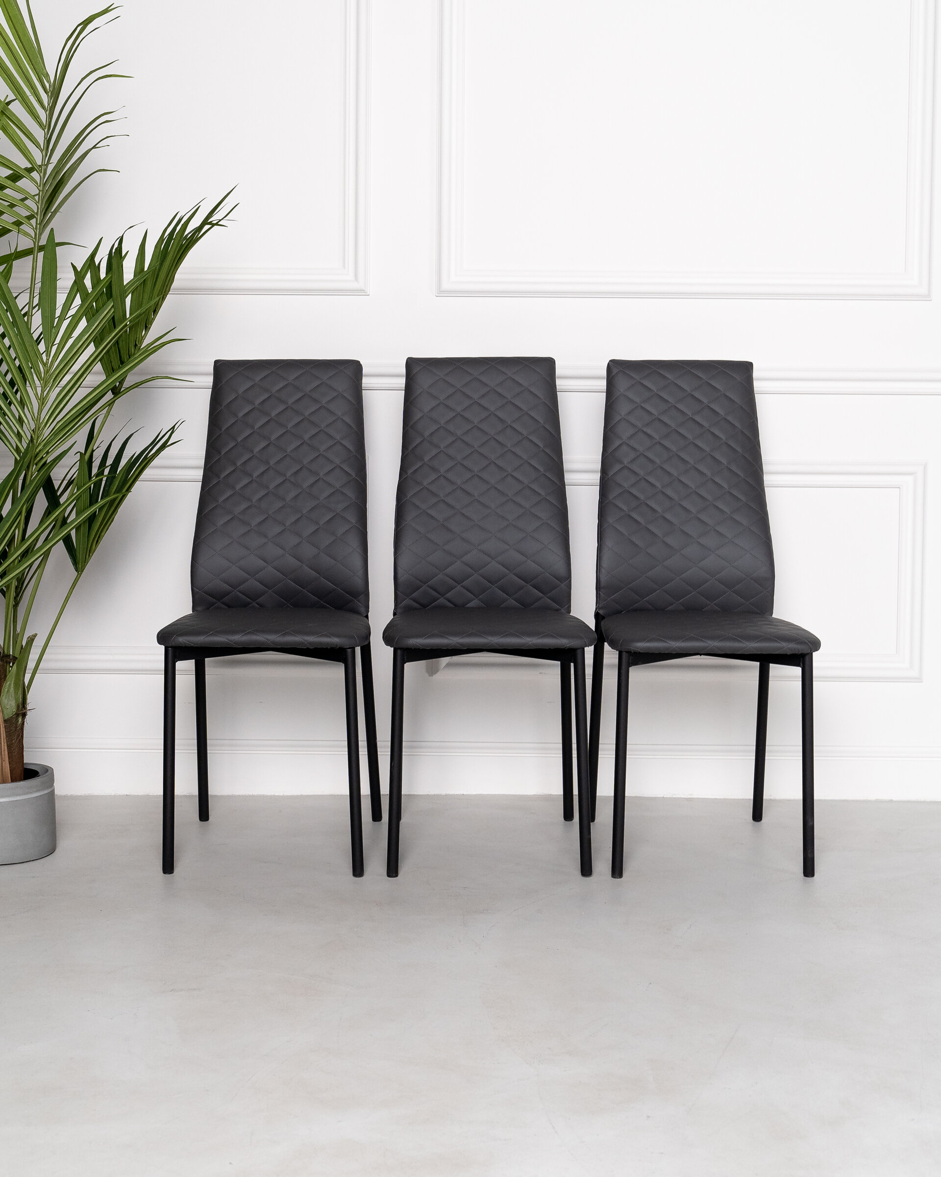 Кухонные стулья, Комплект стульев с мягким сиденьем и спинкой, 3 шт, Стулья для Кухни «Стёганный Черный», Ножки стальные, PU экокожа, Высота 95см