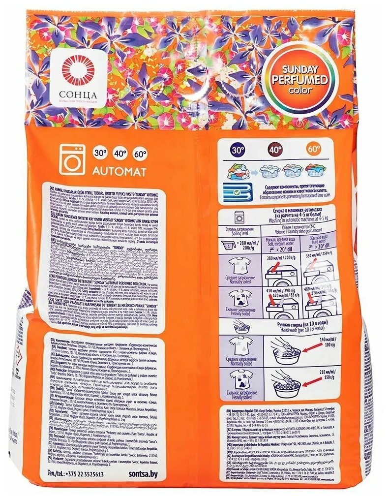--- Парфюмированное средство для стирки цветного белья Сонца Sunday автомат, 3 кг