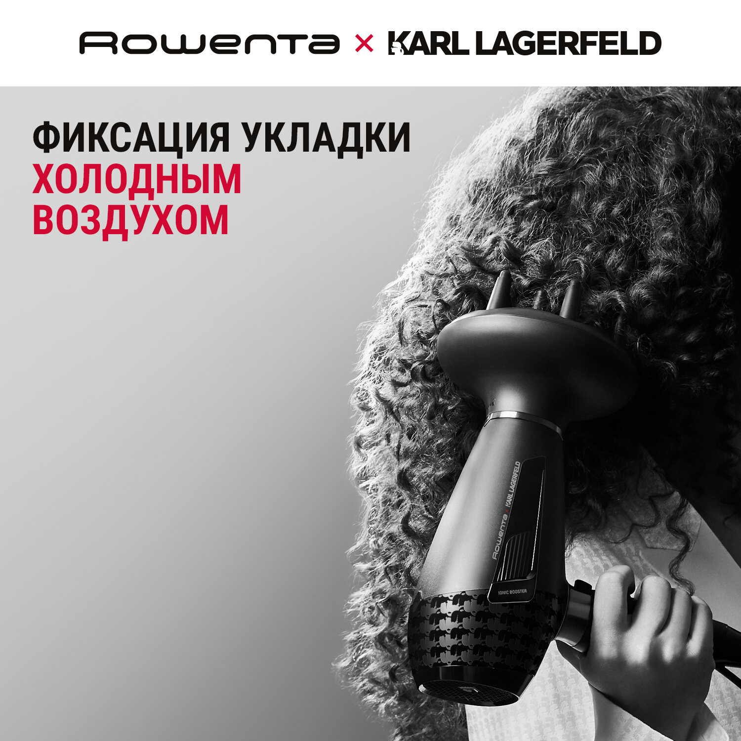 Купить Профессиональный фен для волос Rowenta Karl Lagerfeld K/Pro Stylist CV887LF0 с ионизацией и 3 насадками, 6 режимов, 2200 Вт, черный