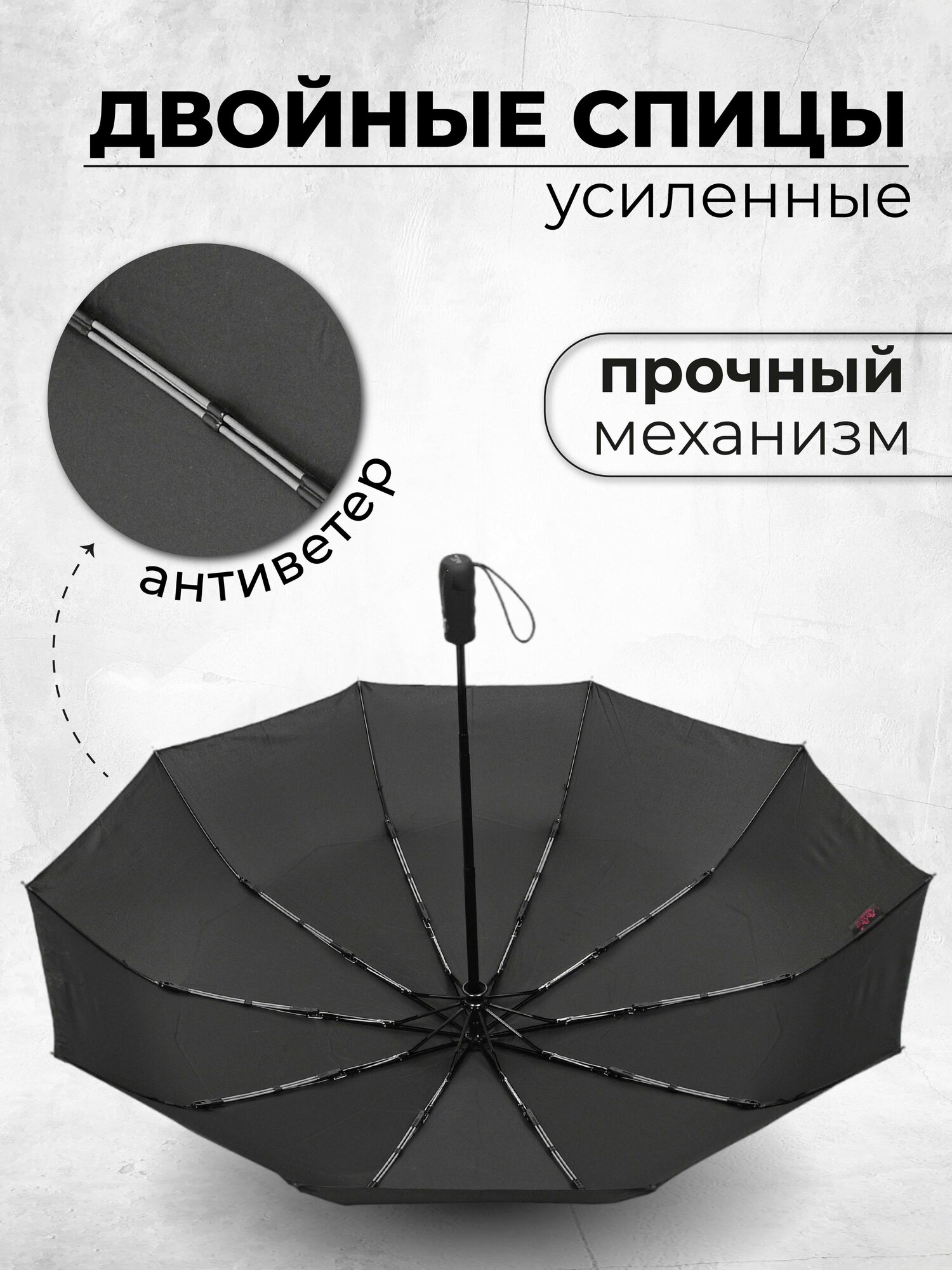 Покупала мужу. Зонт внушительный, автомат, кнопки не хлипкие. Внушает оптимизм двойные спицы: надеюсь при ветреной погоде зонт не сложится )