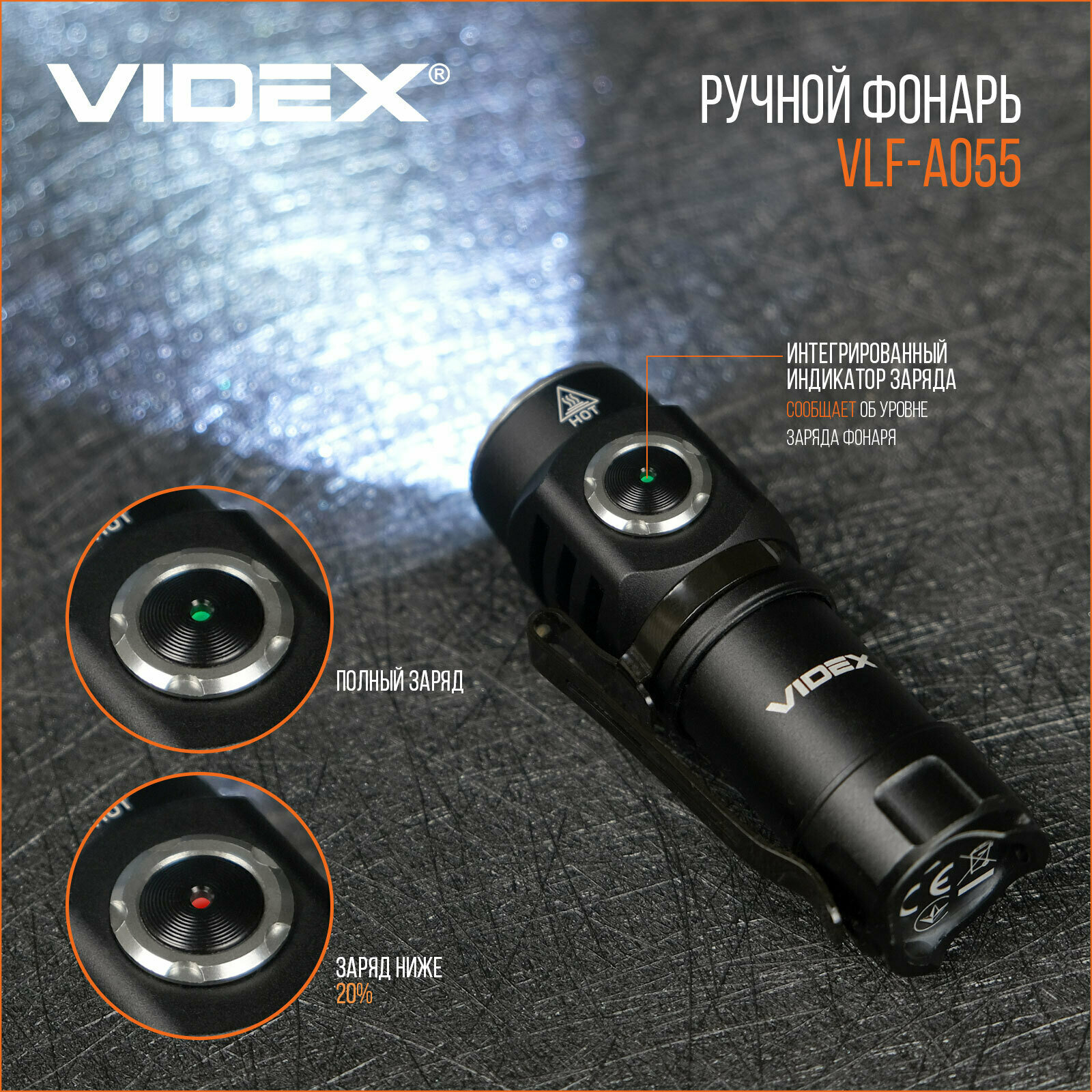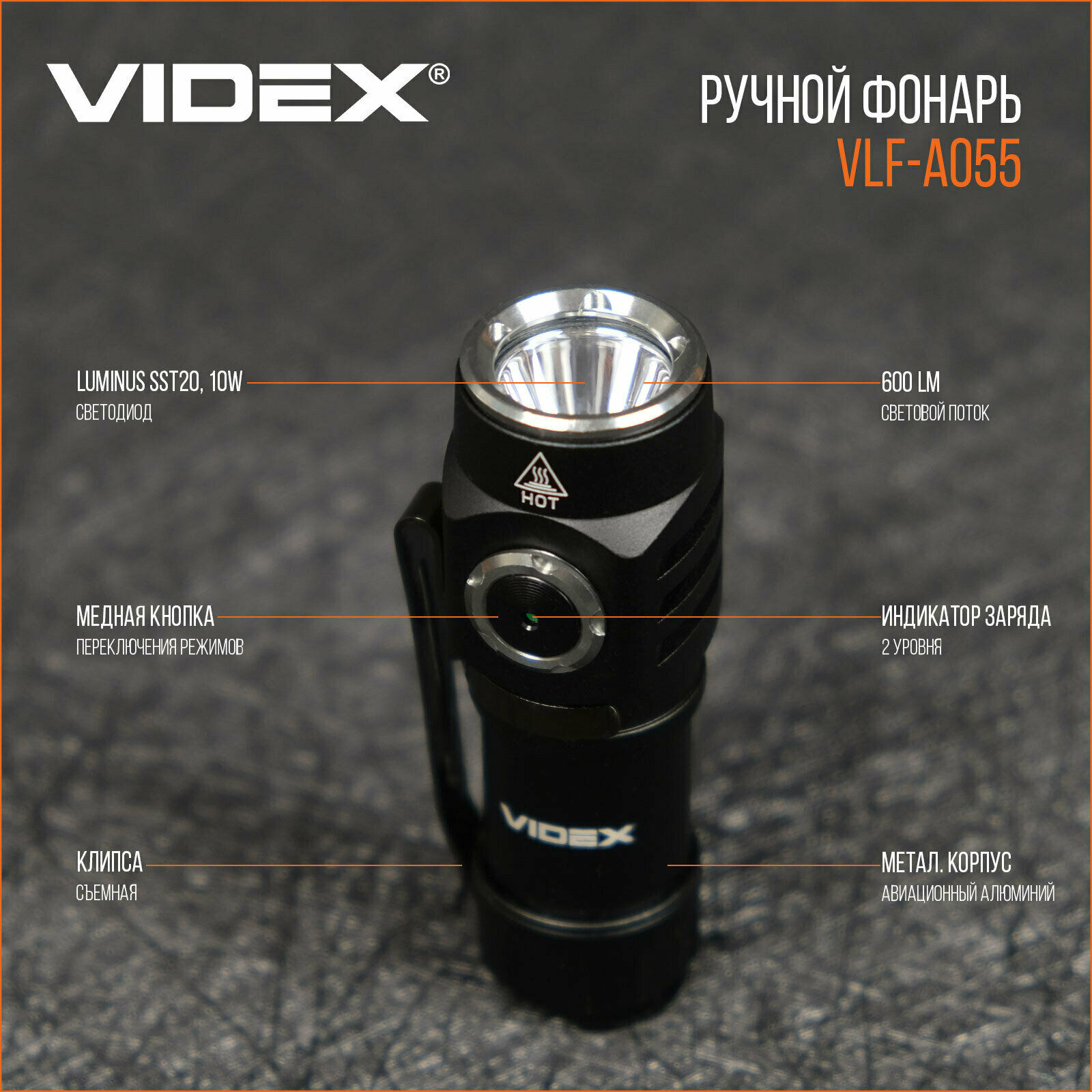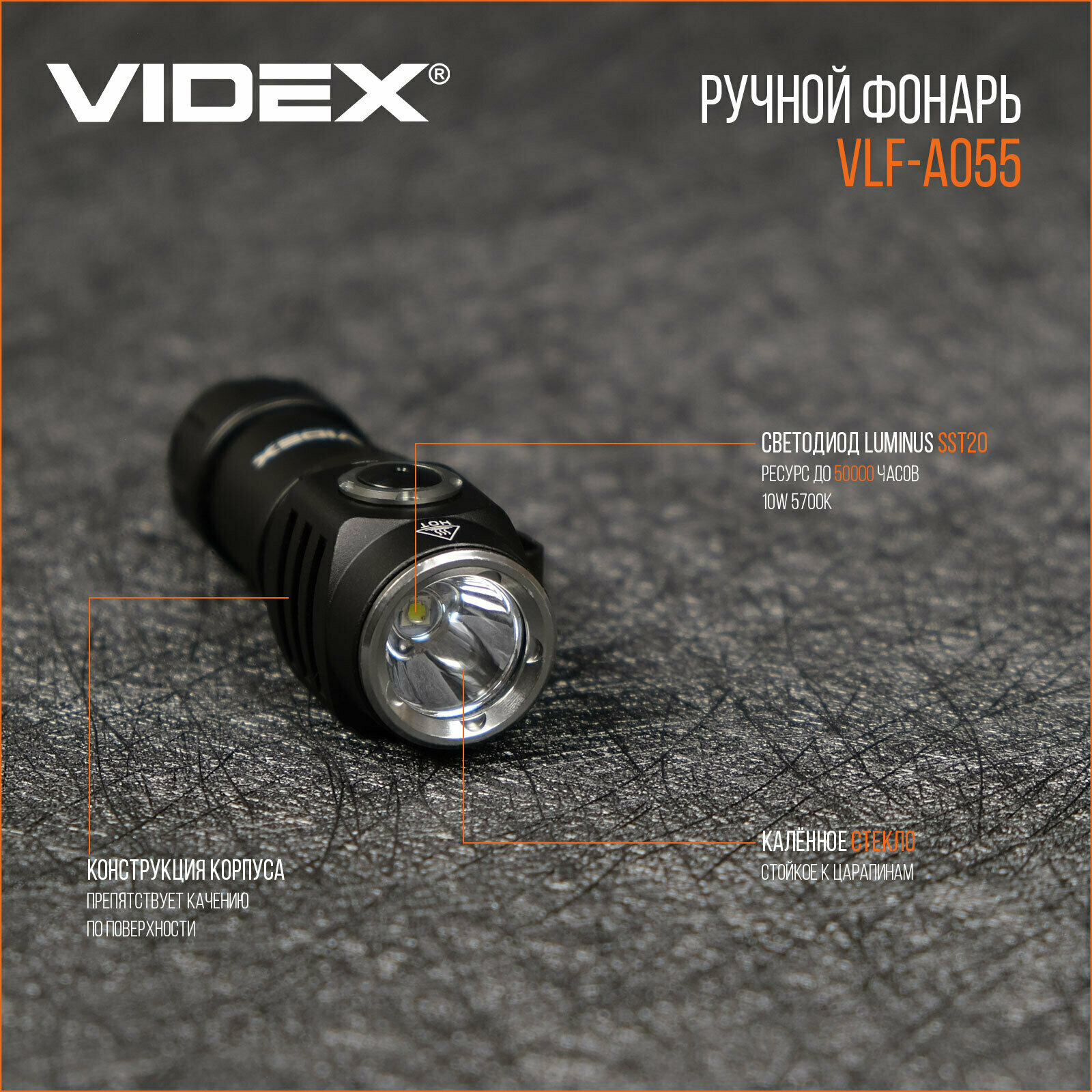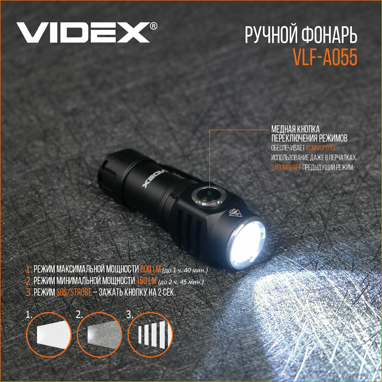 Портативный светодиодный фонарь A055 VIDEX 600Lm 5700K интересное: