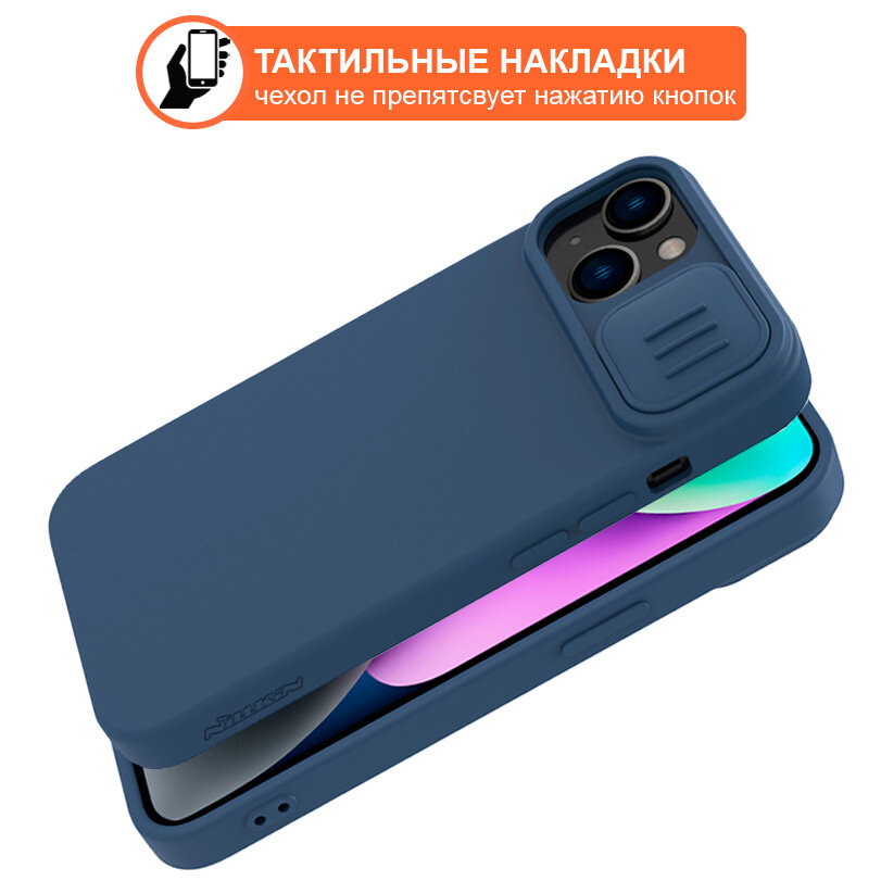 Купить Чехол для iPhone 14 Plus Nillkin MagSafe синий, силиконовый, противоударный с усиленными углами и защитой камеры
