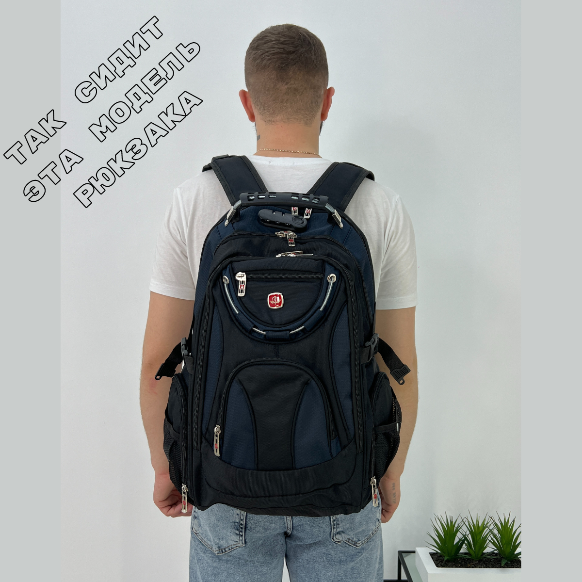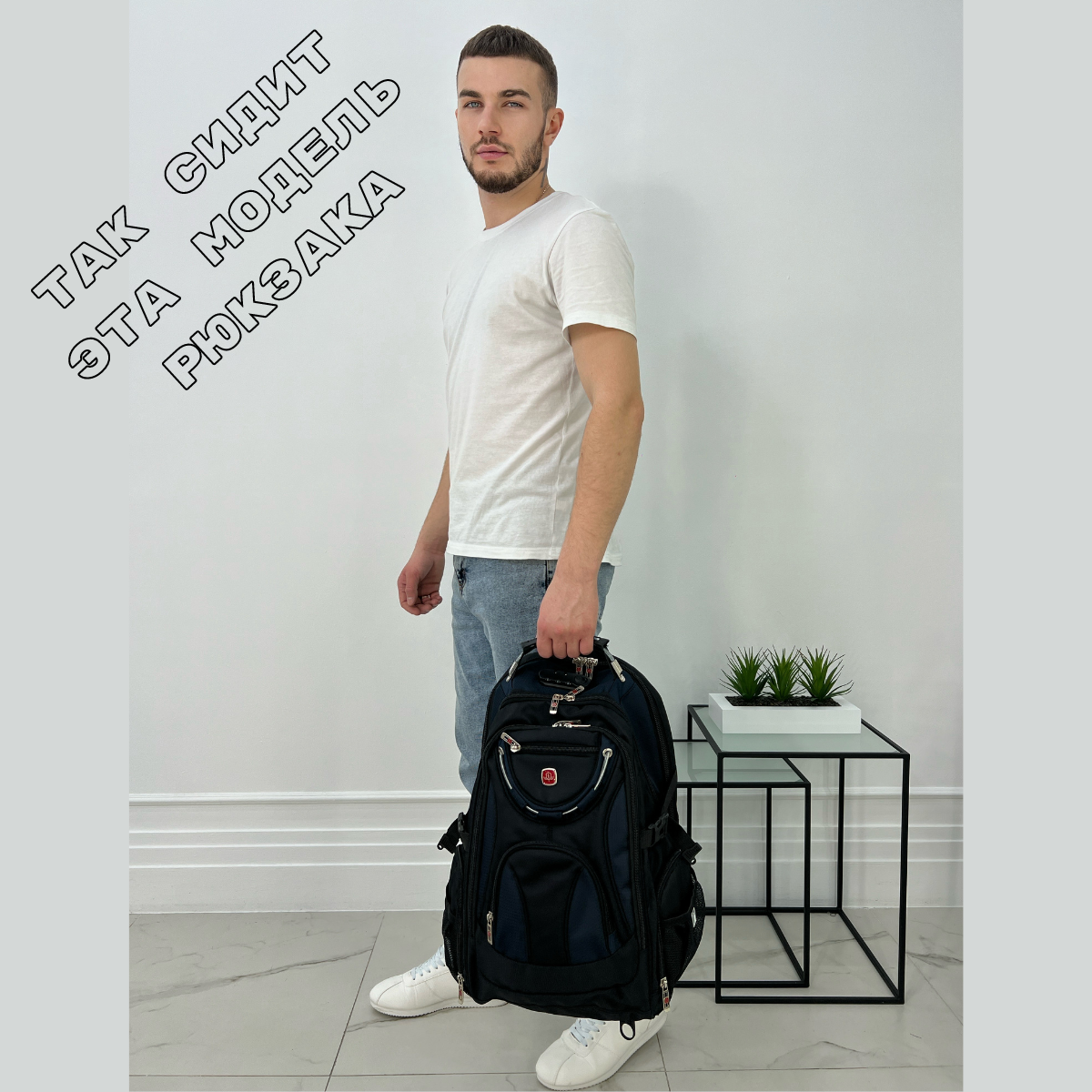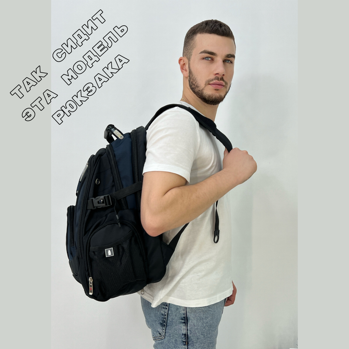Рюкзак мужской городской спортивный 35л, USB, черный/синий