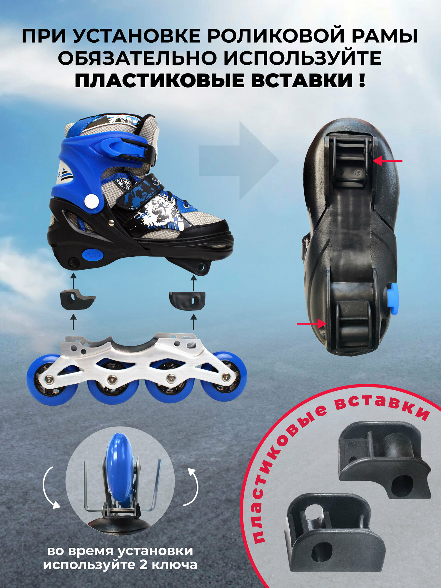 | Особенности | коньки-ролики, раздвижные, с тормозом, сумка-переноска в комплекте |