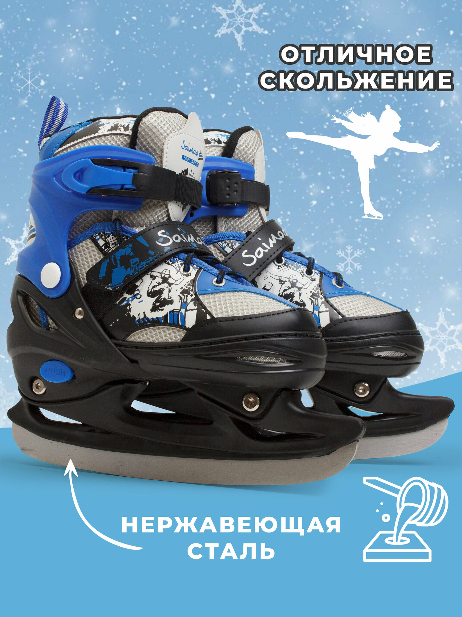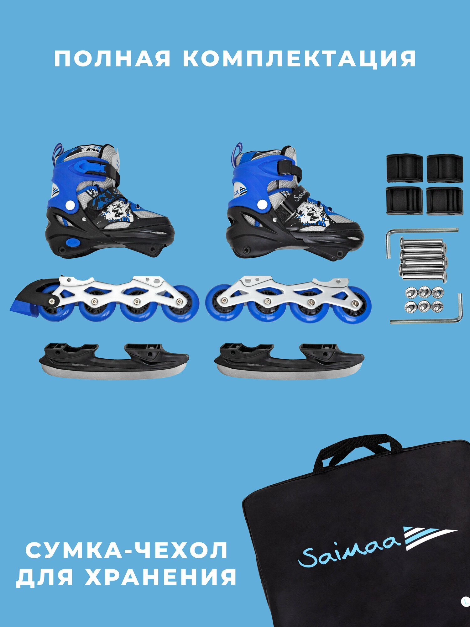 Роликовые коньки 3 в 1 раздвижные Saimaa, размер S (31-34), цвет синий