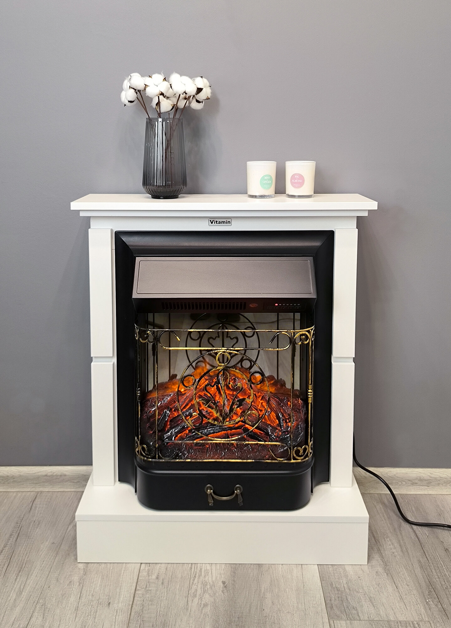 Камин электрический VITAMIN c серым порталом