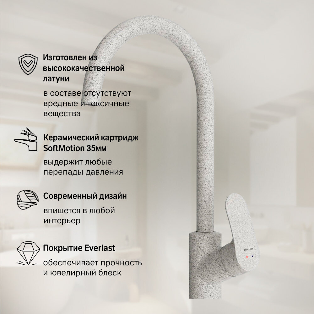 Смеситель для кухни AM.PM Chic белый камень, высокий поворотный излив 270 мм, стабилизирующий картридж, латунь