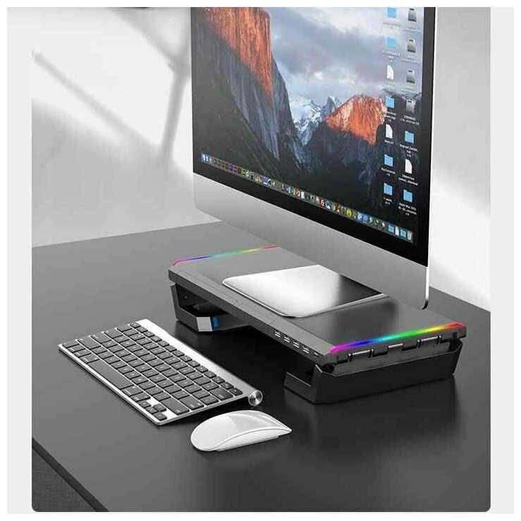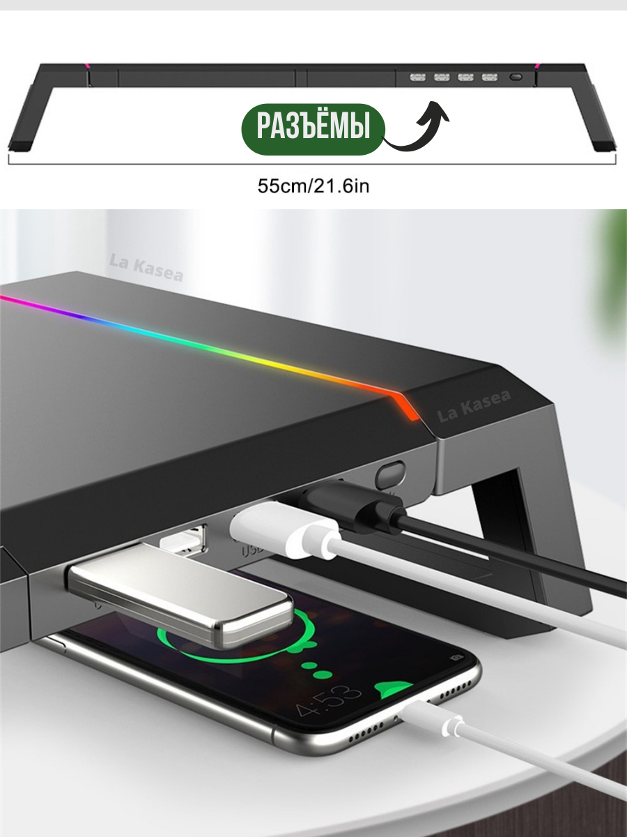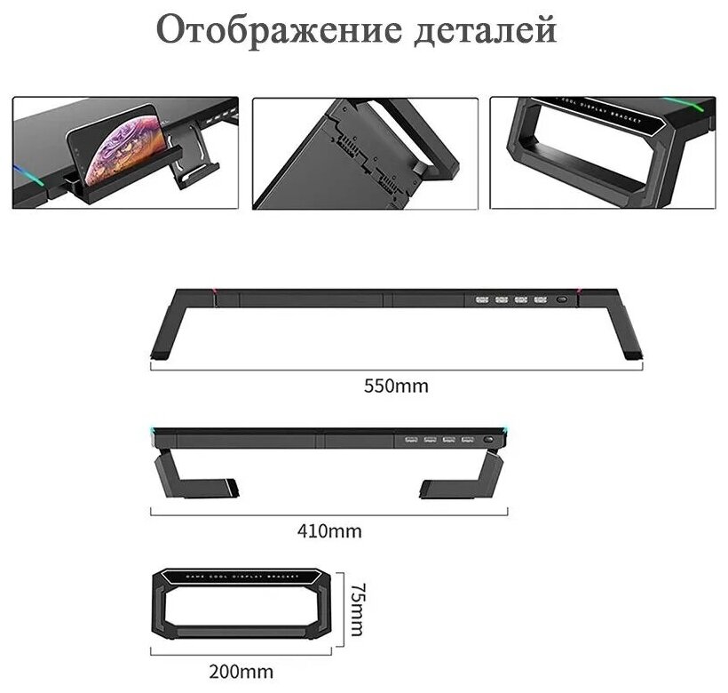 Подставка для монитора мультифункционая с RGB подсветкой компьютерная с USB портами для ноутбука интересное: