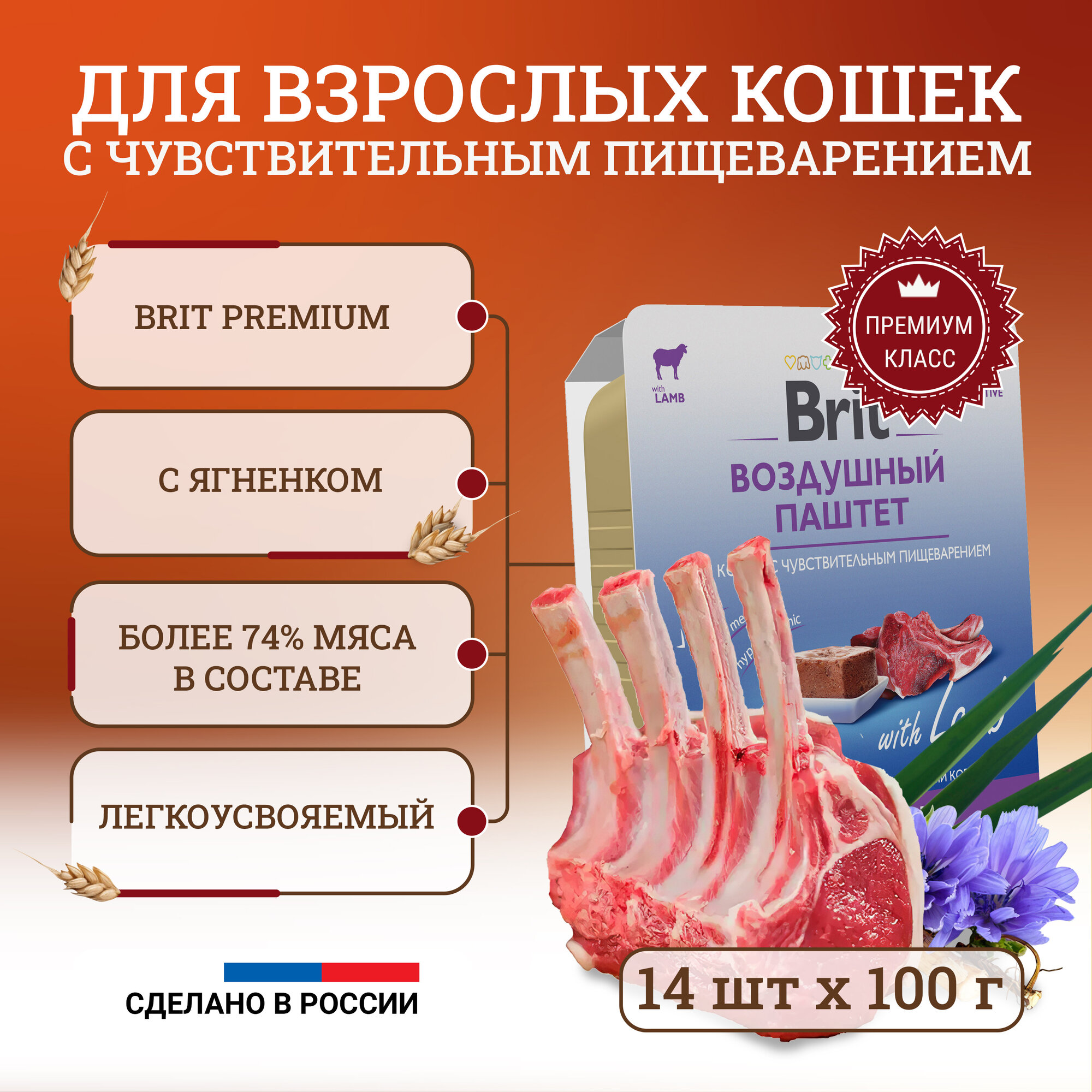 Brit воздушный паштет для кошек с чувствительным пищеварением Ягненок, 100 г. упаковка 14 шт