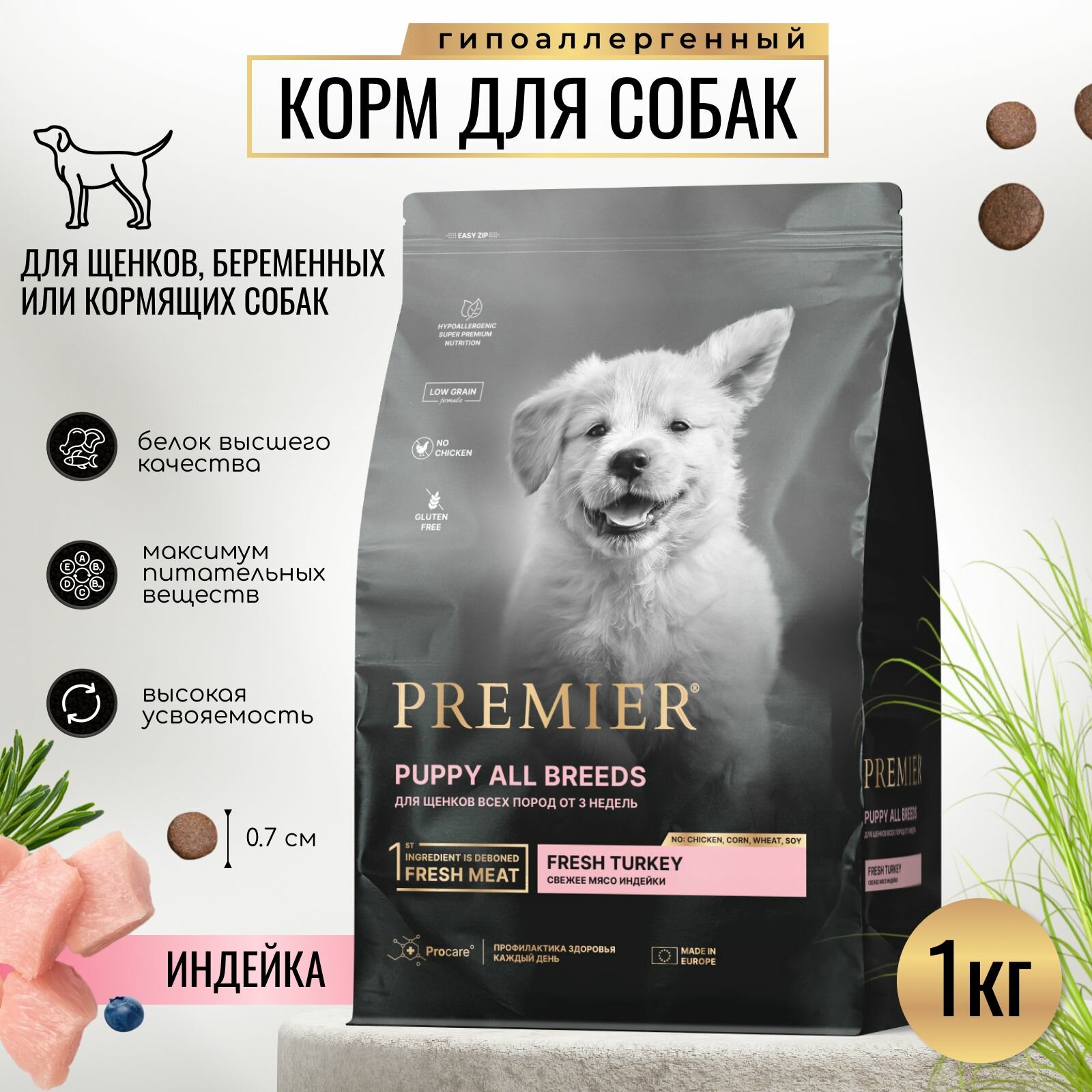 Сухой корм для щенков от 3 недель, беременных и кормящих собак Premier индейка 1 уп. х 1 шт. х 1кг