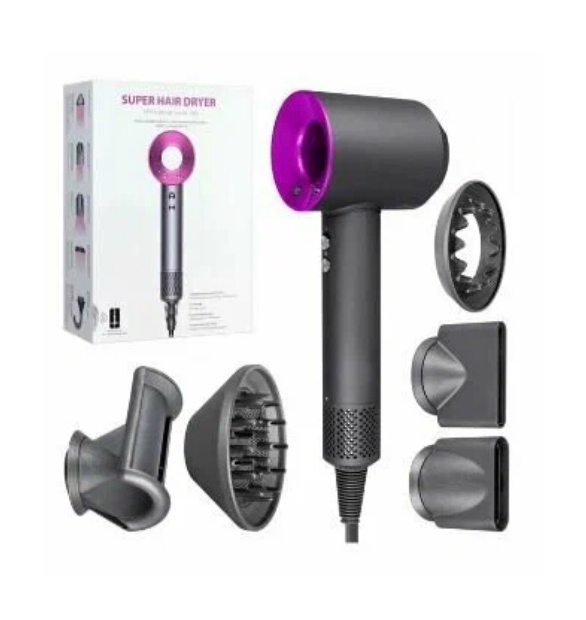 Умный фен для сушки и укладки волос Super Hair Dryer 1600 Вт / 3 скоростных режима / 5 магнитных насадок / ионизация воздуха интересное: