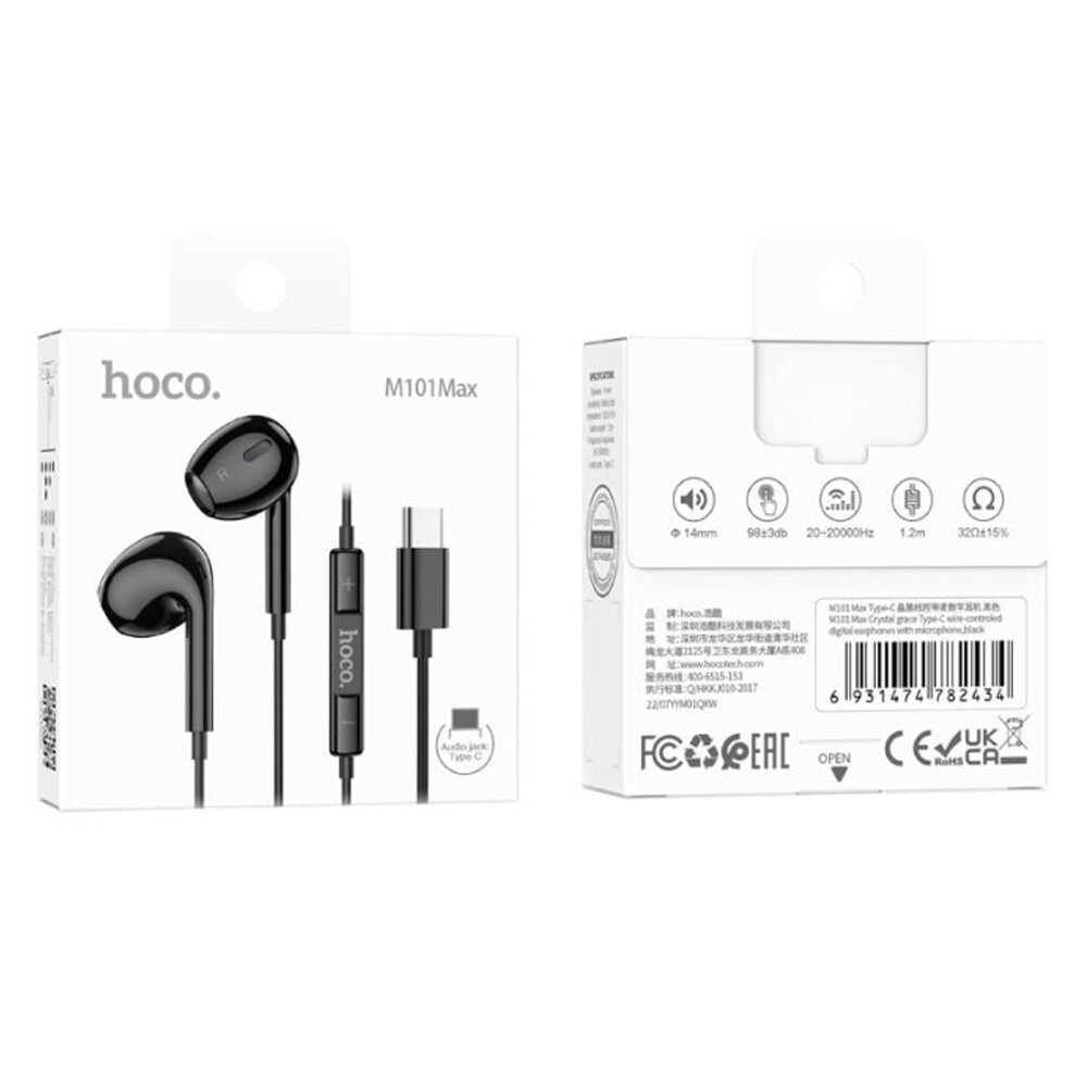 Наушники M101 Max Type-C, Crystal grace wire-controlled digital earphones with microphone, HOCO, черные