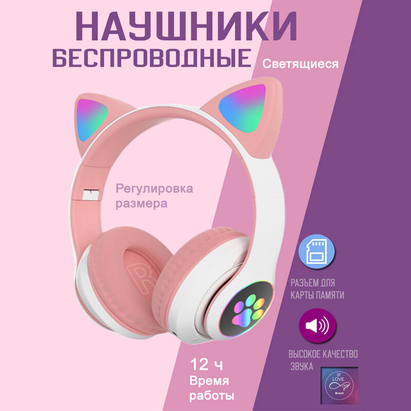 Беспроводные Bluetooth наушники с кошачьими светящимися ушками для детей и взрослых Cat Ear VZV-28M розовый