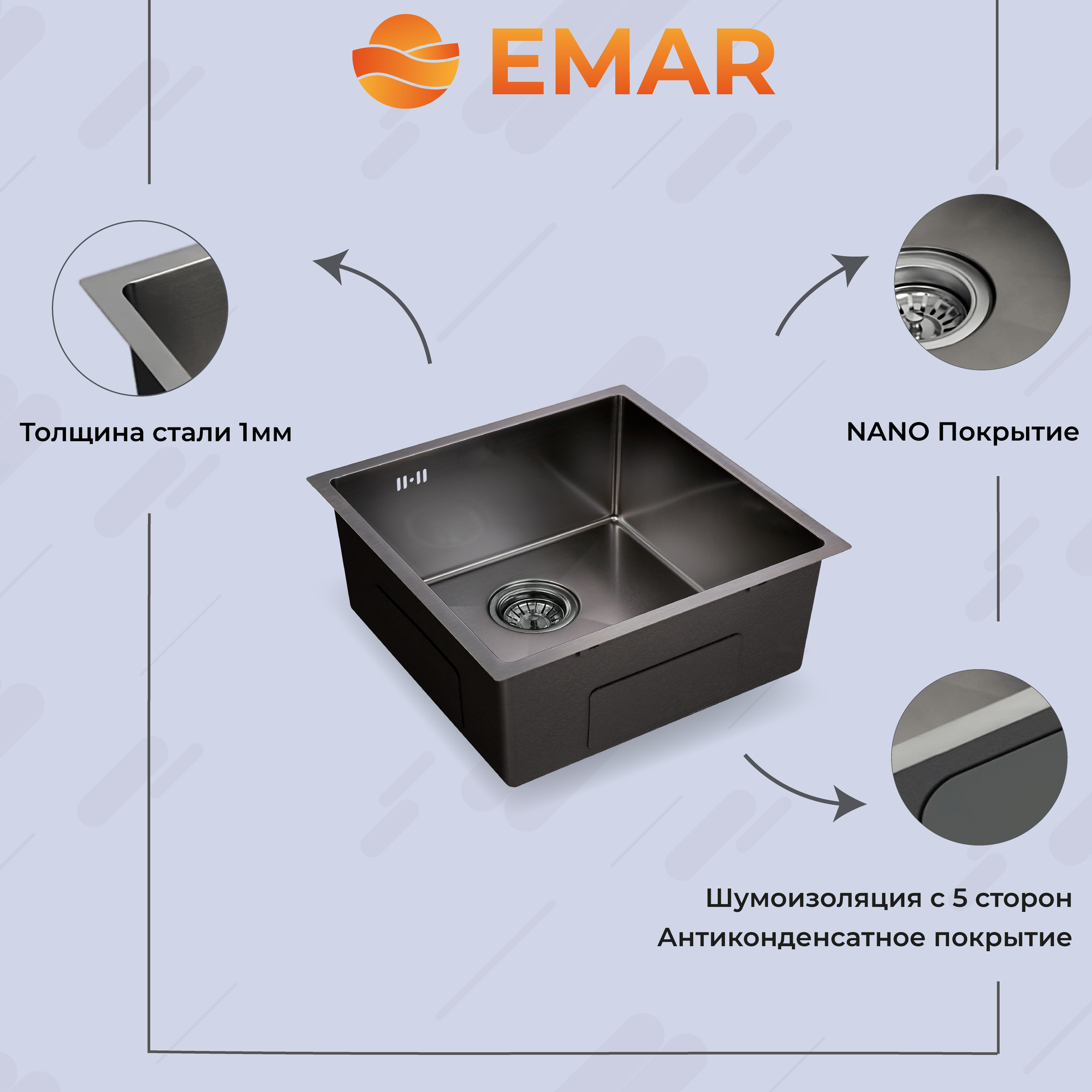 Emar EMB-131 PVD Nano Dark, мойка, вороненая сталь