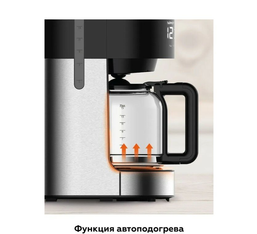 Кофеварка электрическая BQ CM1001, 900Вт, 1,5л, капельная, LED дисплей, сенсорное управление, черный-стальной интересное: