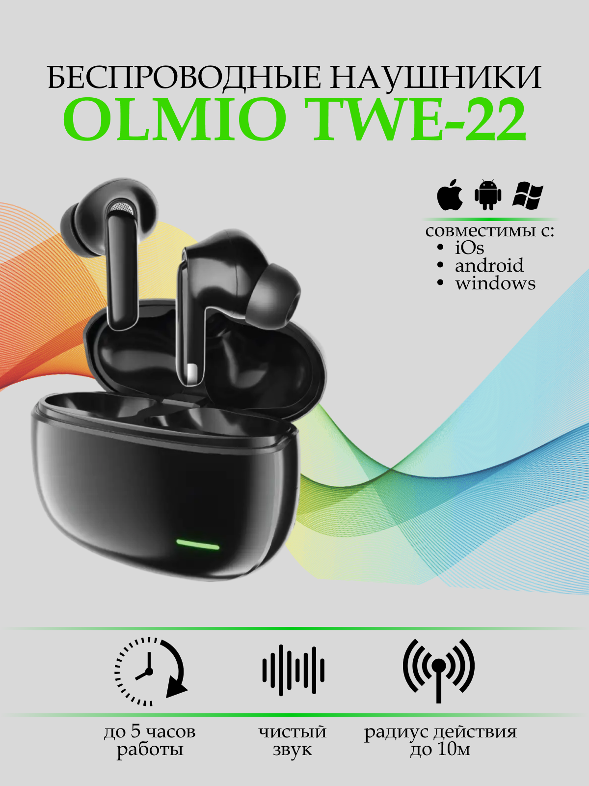 Наушники Olmio TWE-22 черный (045281) интересное: