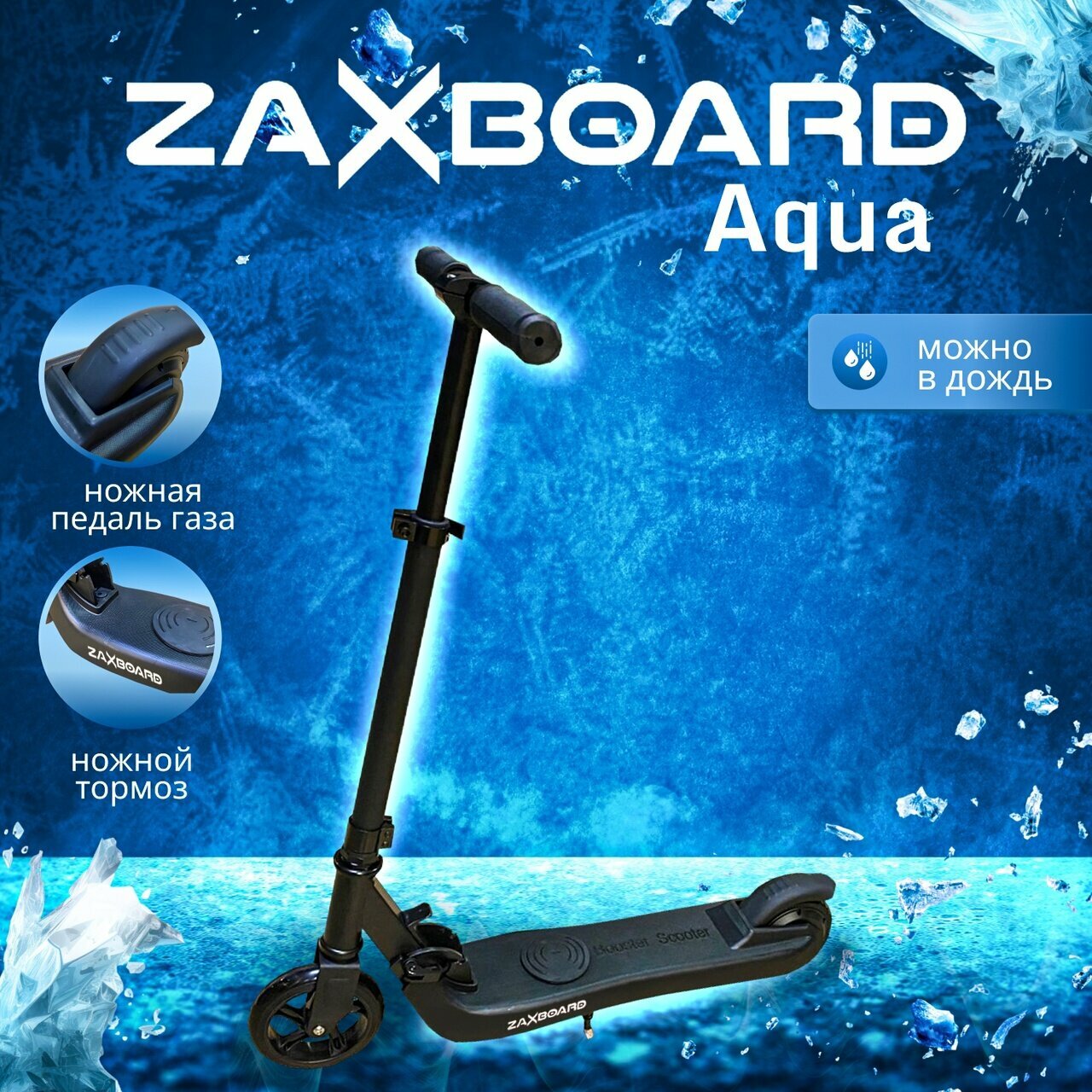 Электросамокат детский от 6 лет Zaxboard Junior Aqua 150W (черный) интересное: