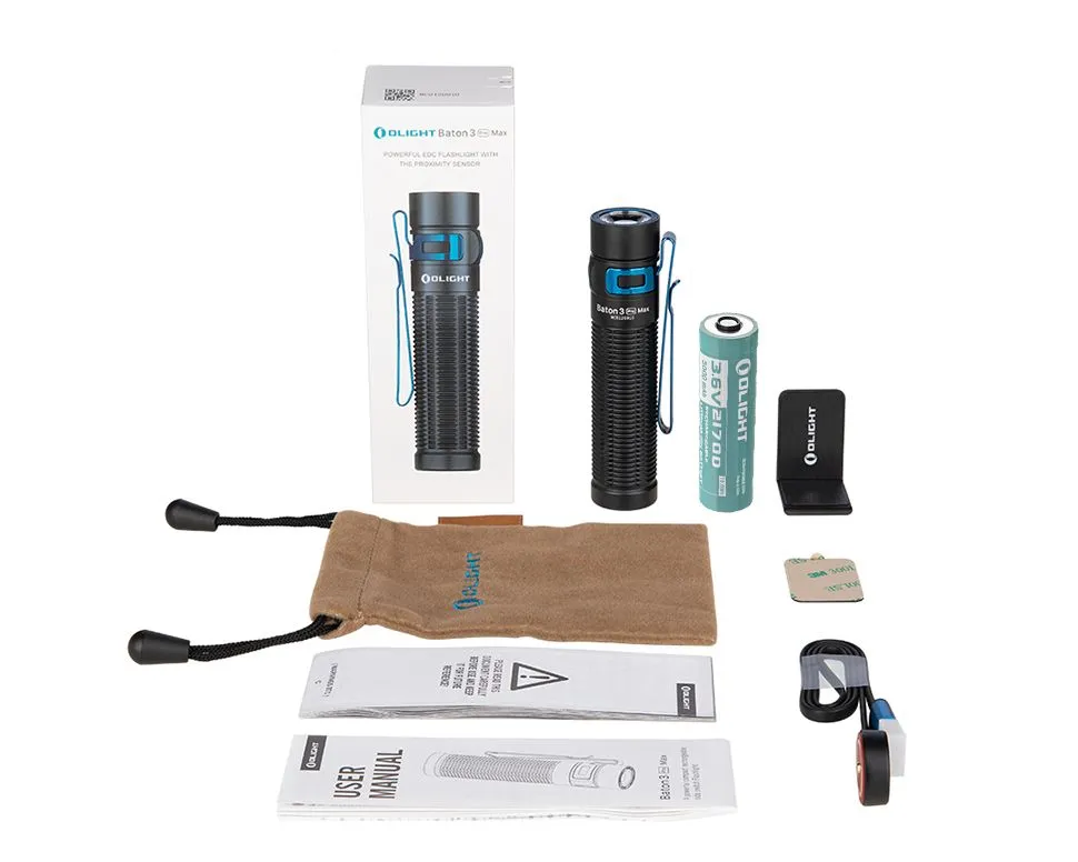 | Дополнительная информация | тип батарей: ICR21700; подробная комплектация: Фонарь Olight Baton 3 Pro Max, мешочек для переноски Olight, магнитное зарядное USB устройство Olight MMC3, крепление на стену L-образное, аккумулятор Olight ORB-217C50 5000 mAh, клипса, инструкция (+русский язык).; емкость аккумулятора: 5000 мА·ч; количество батарей: 1; количество режимов работы: 6; потребление питания: от USB, от сети, от бортовой сети автомобиля |