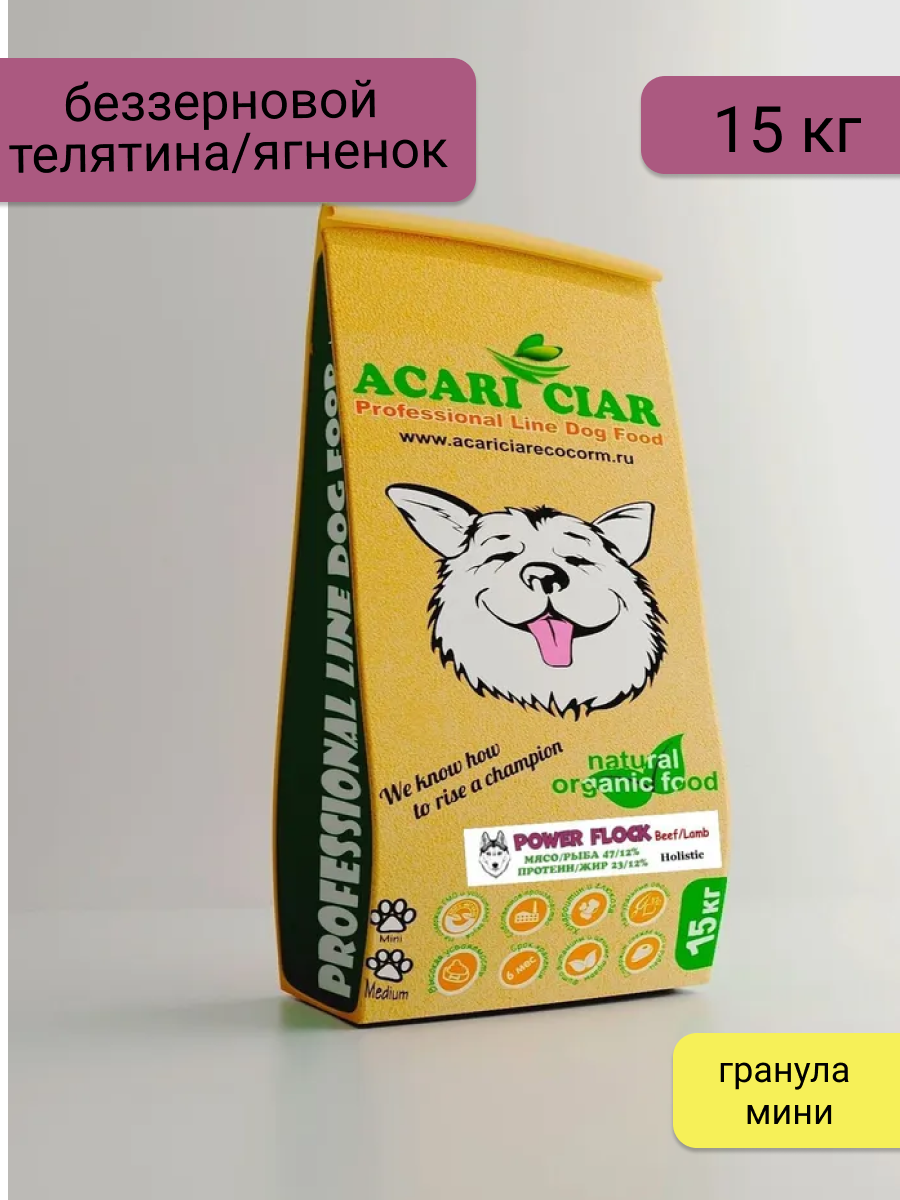 Купить Сухой корм для собак ACARI CIAR POWER FLOCK Beef/Lamb 15кг Мини гранула