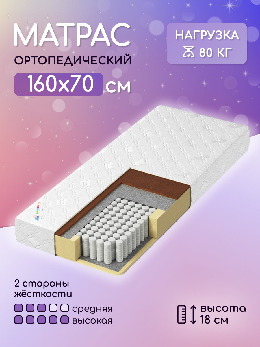Матрас Капризун "Микс Хард Плюс", ортопедический, 160x75x18 см, независимые пружины, две стороны жесткости