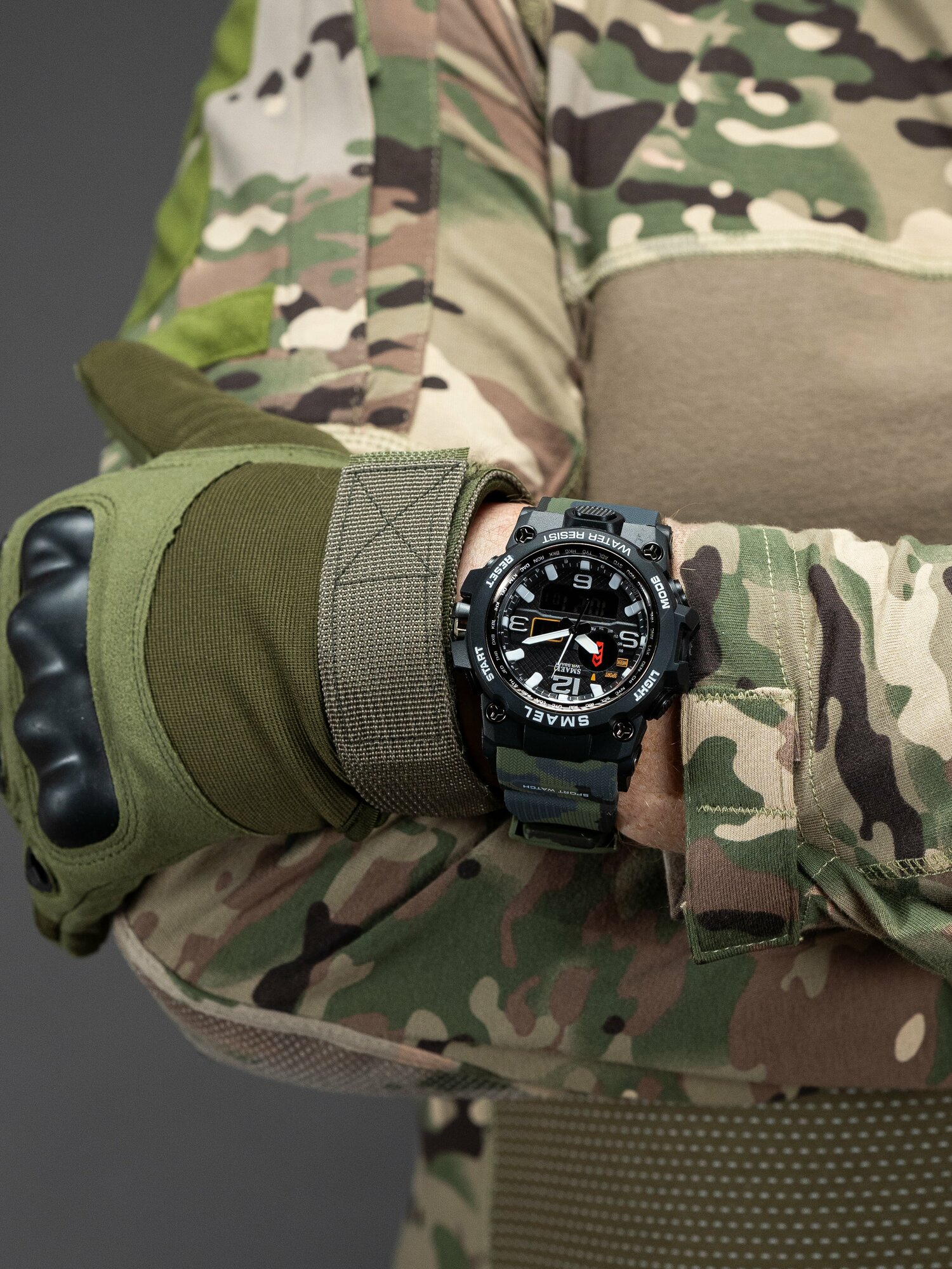 Купить Часы мужские наручные тактические кварцевые электронные SMAEL SM1545 спортивные и водонепроницаемые. зеленые
