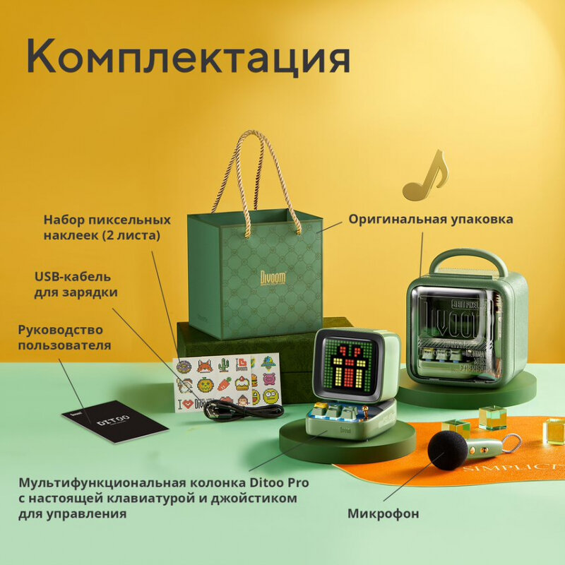 Колонка Divoom портативная Ditoo-Mic Pixel Art с микрофоном (Green)