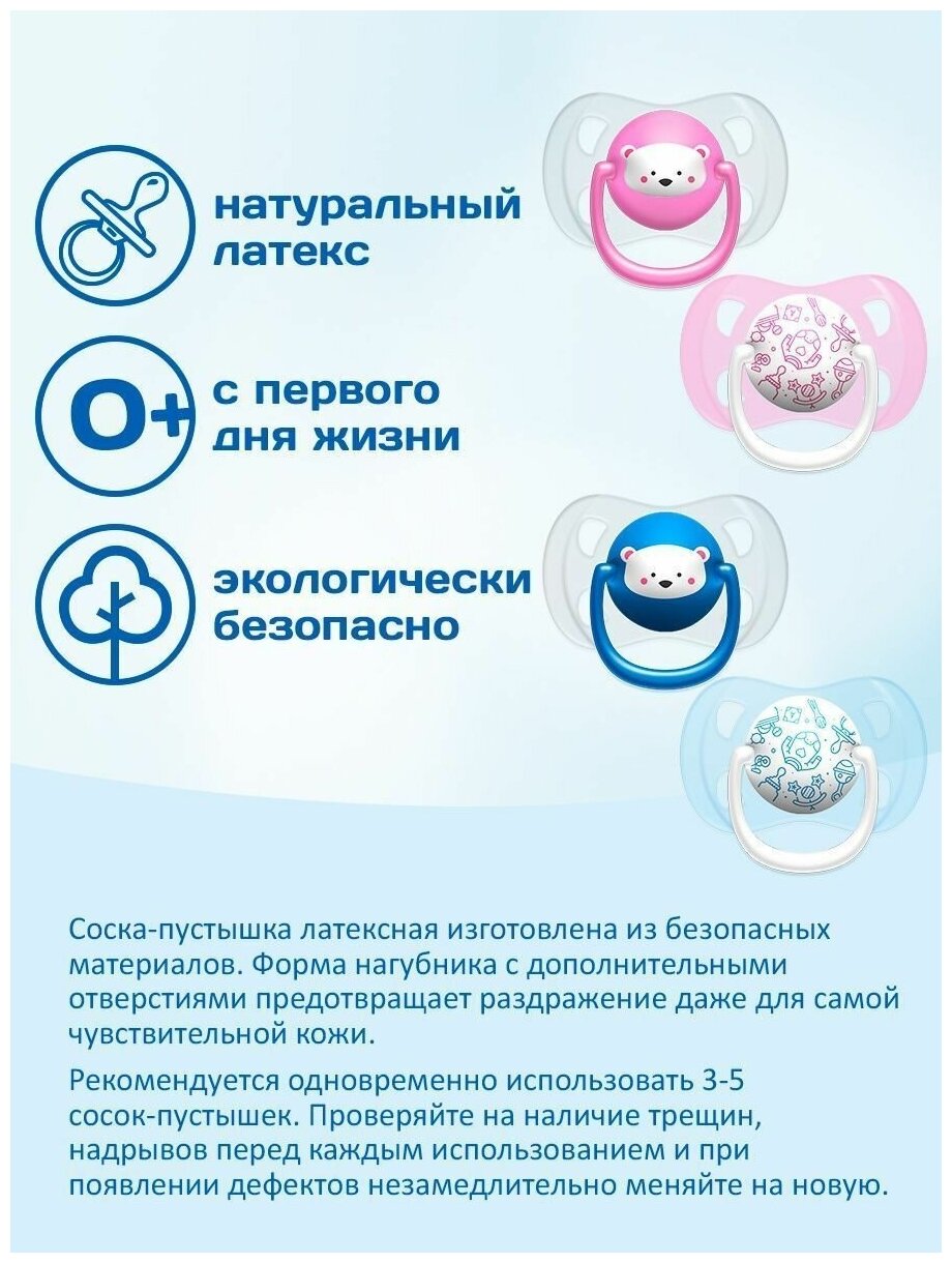 Соска-пустышка латексная для новорожденных от 0 до 3 месяцев Умка для девочек розовая 2 штуки + Контейнер для хранения соски интересное: