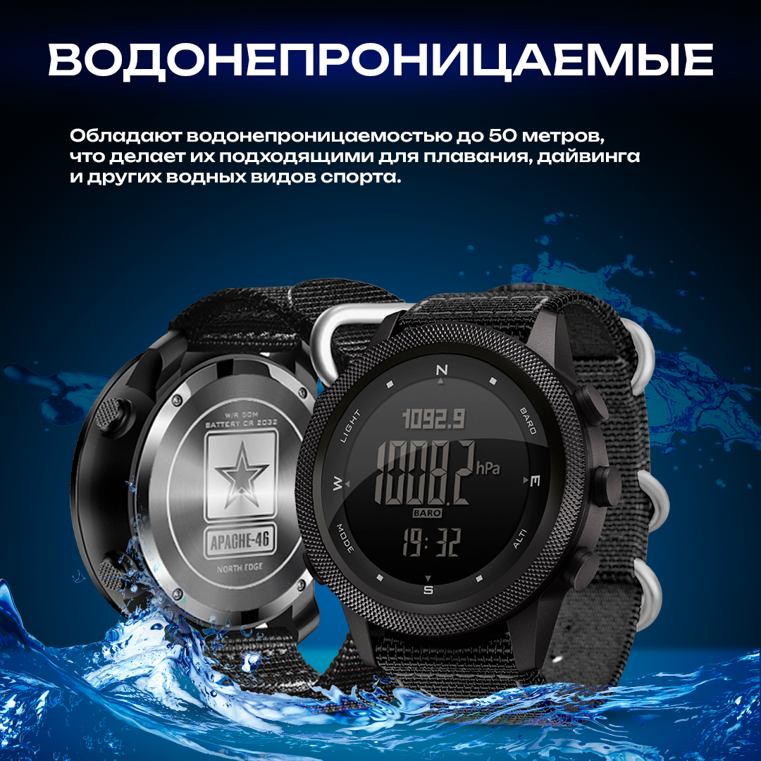 Часы, мужские наручные, NORTH EDGE Apache 46 ( армейские часы, тактические, влагостойки, ударостойкие, с подсветкой ) интересное: