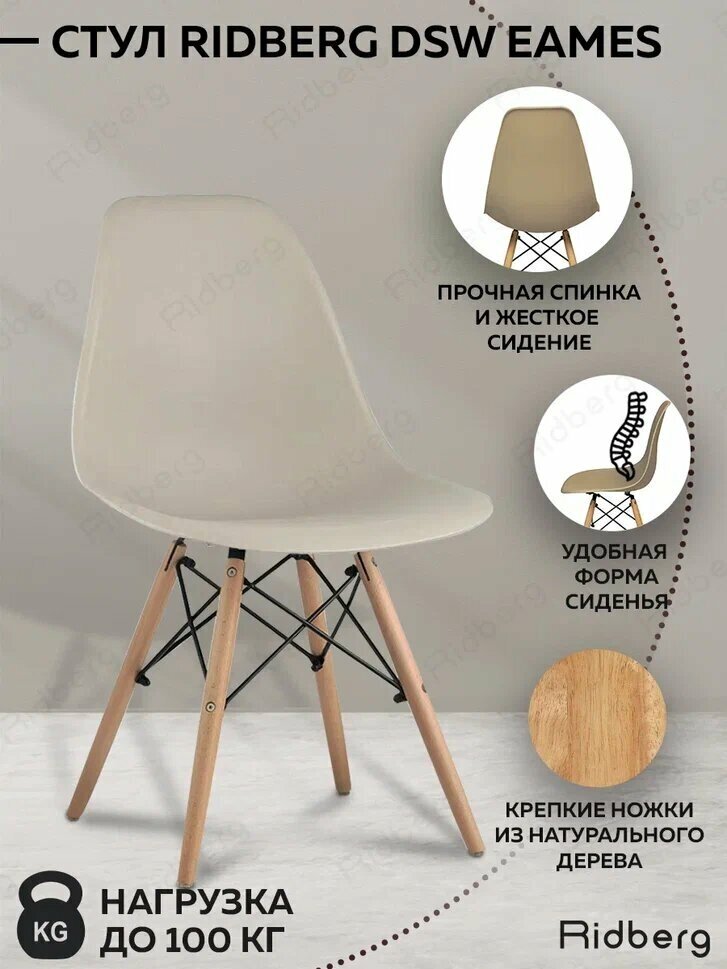 Стул RIDBERG DSW EAMES, бежевый / Кухонный стул со спинкой для гостиной, столовой