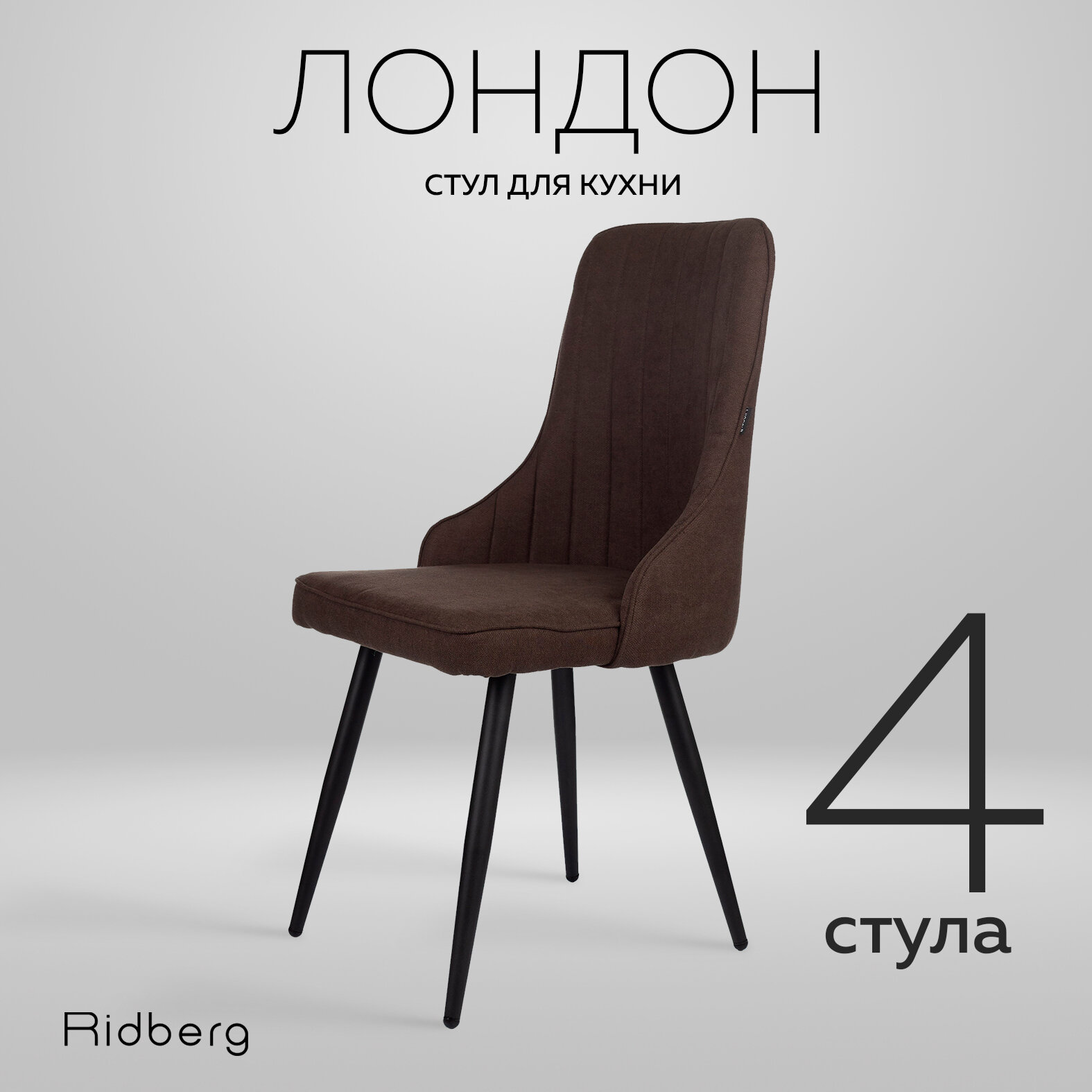 Комплект стульев для кухни и гостиной RIDBERG Лондон Wool (2шт., Coffee, Размеры: 48x48x90; Ножки: Металл)