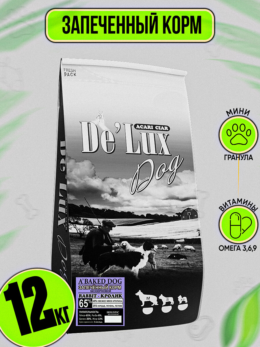 Запеченный беззерновой корм для собак De`Lux Dog A Baked Dog Rabbit-кролик 65% 1,2 кг (S-гранула)
