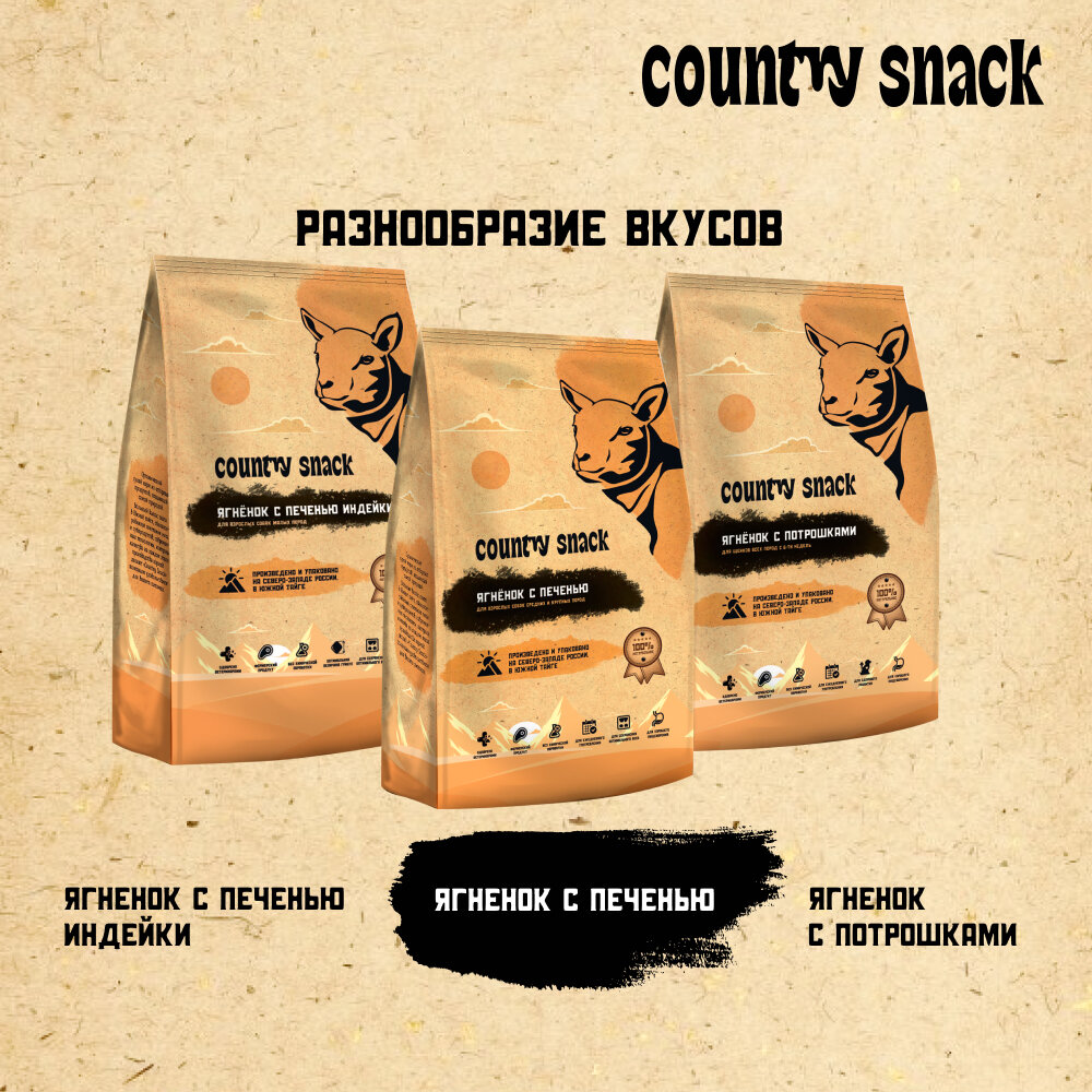 Country snack корм сухой для взрослых собак средних и крупных пород Ягненок с печенью, 15 кг. интересное: