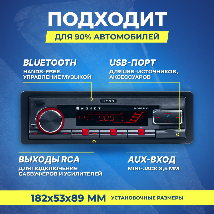 Головное устройство (автомагнитола) урал молот АРС-МТ 221К